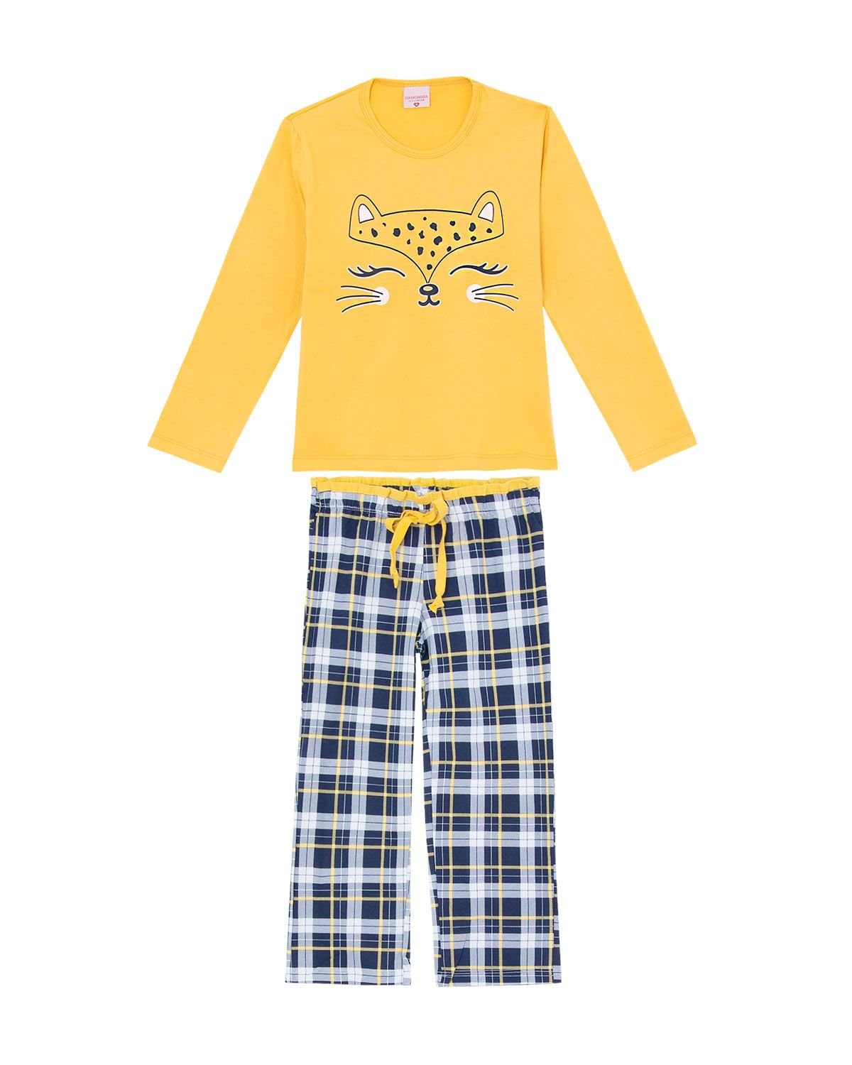 Esse pijama infantil feminino é a peça ideal para deixar os momentos em família divertido e inesquecíveis. A blusa de manga longa possui estampa fofa de oncinha que brilha no escuro, e a calça em malha xadrez, possui amarração no cós, deixando o conjunto mais confortável. Confeccionado em malha de algodão, leve e macia, o pijama proporciona noites tranquilas e confortáveis para as meninas.