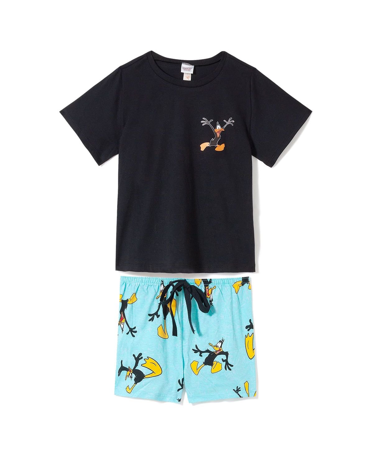 O patinho mais descolado da turma dos Looney Tunes está aqui para tornar os momentos de descanso das meninas muito mais divertidos. Este pijama é composto por uma blusa de mangas curtas e um short com amarração decorativa no cós, sendo confeccionado em 100% algodão. Os fios deste pijama passam por um processo de beneficiamento, que envolve a seleção de fios mais longos e limpos, aumentando a durabilidade e tornando-o hipoalergênico. Isso significa que as crianças ficam livres das indesejáveis alergias.