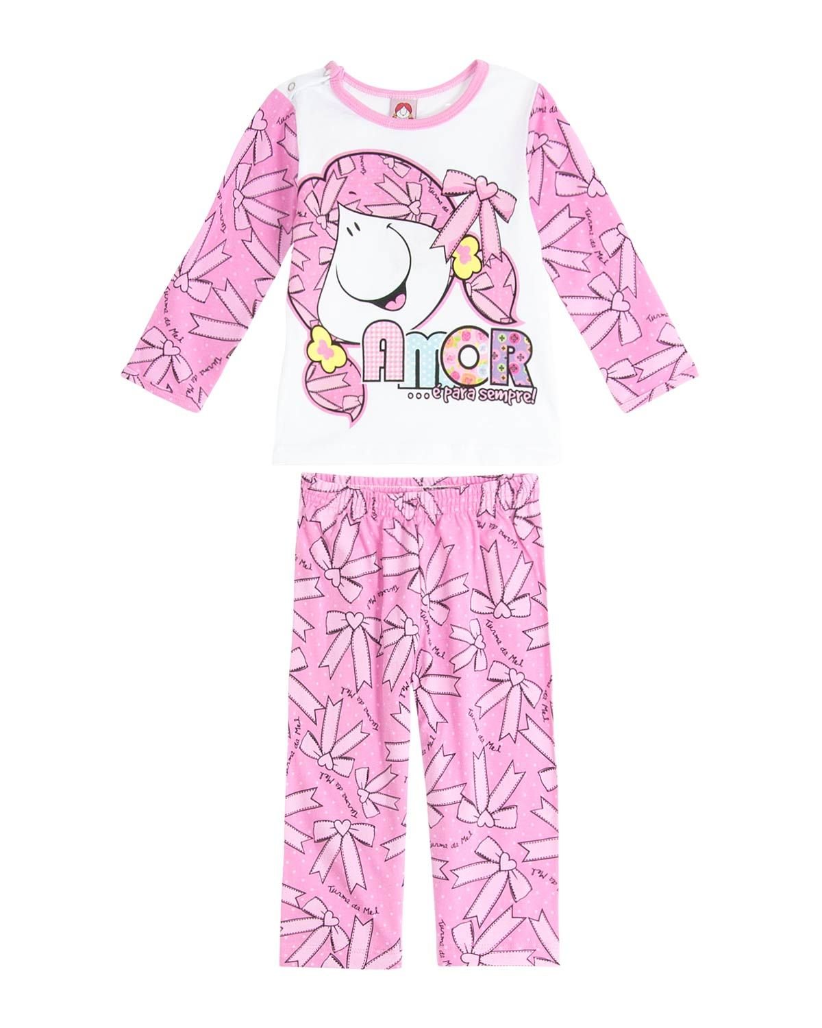 O pijama ideal para as crianças é aquele que remete a infância e tras algo de diferente e inovador que chame a sua atenção, para tornar a hora de dormir um momento mágico e encantador. Para as meninas, nada melhor do que aquele pijama com estampa dos brinquedos que elas mais adoram: as bonecas. Esse modelo possui blusa de manga longa com frase fofa e calça com estampa de lacinhos, ideal para as noites em que o frio toma conta. A malha 100% algodão é super confortável e macia, aumentando ainda mais a sensação de conforto.