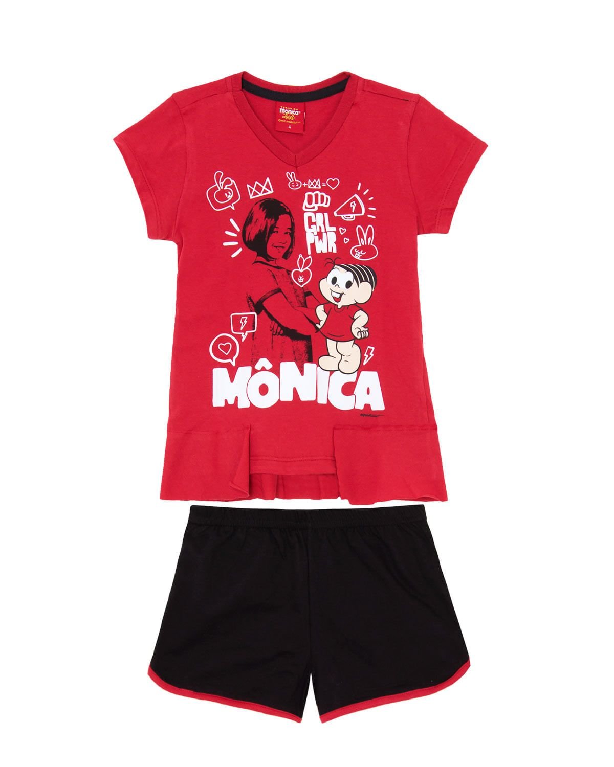 Decidida e carinhosa, a ''dona da rua'' trouxe esse pijama para garotas fortes e determinadas! O conjunto do filme "Turma da Mônica Laços" é confeccionado em malha 100% algodão que proporciona maior durabilidade e maciez, melhorando a resistência à formação de bolinhas. Sua blusa de manga curta é estampada em silk, traz gola V e babados no barra. Seu short com cós de elástico, possui viés vermelho que compõe com a cor da blusa.