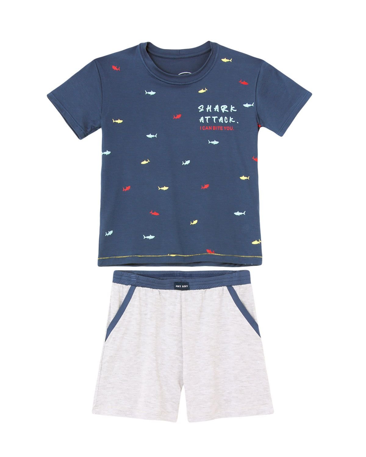 Direto do fundo mar, esse pijama conta com uma estampa divertida para animar as noites dos meninos! Sua camiseta possui mini tubarões coloridos e costura contrastante na barra da peça. Sua bermuda tem bolsos e cós de elástico. Confeccionado em viscolycra, esse pijama tem tudo para tornar a hora do descanço animada, leve e confortável.