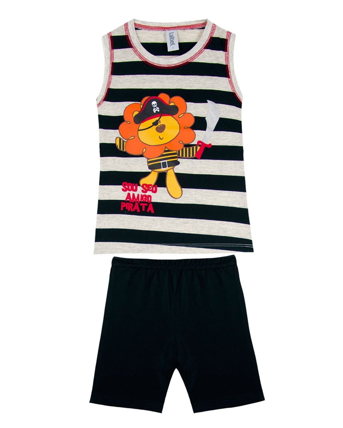 A hora de dormir é um momento único em família e precisa ser divertido, colorido e acolhedor. Para isso, este pijama tem modelagem que respeita a infância, com estampa lúdica e cheia de charme. Feito em malha extremamente leve e macia e com estampa colorida e divertida de leão pirata com listras, a diversão e o conforto estarão garantidos na hora de dormir. Acompanha tapa olho de pirata.