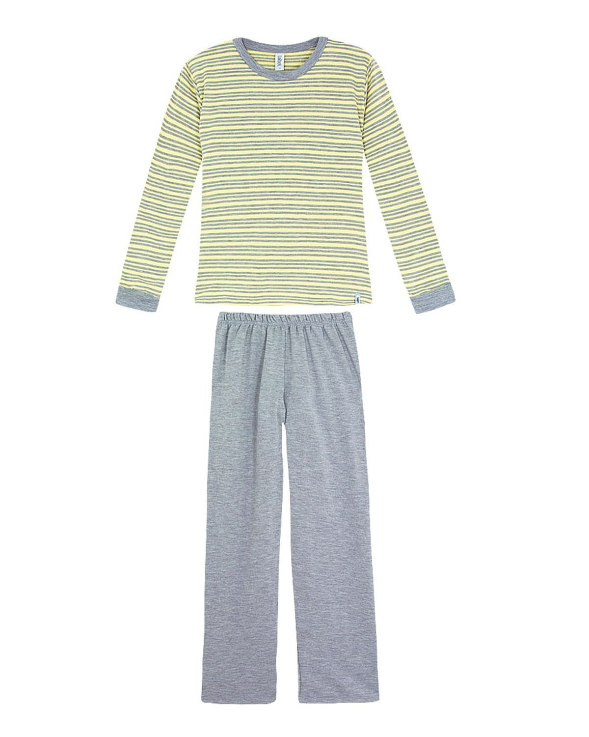 Para isso, este pijama tem modelagem que respeita a infância, porém com a modernidade da estampa de listras que remete ao menino moço. Bem quentinho, todo feito em moletinho flanelado, ideal para noites de temperaturas mais frias.