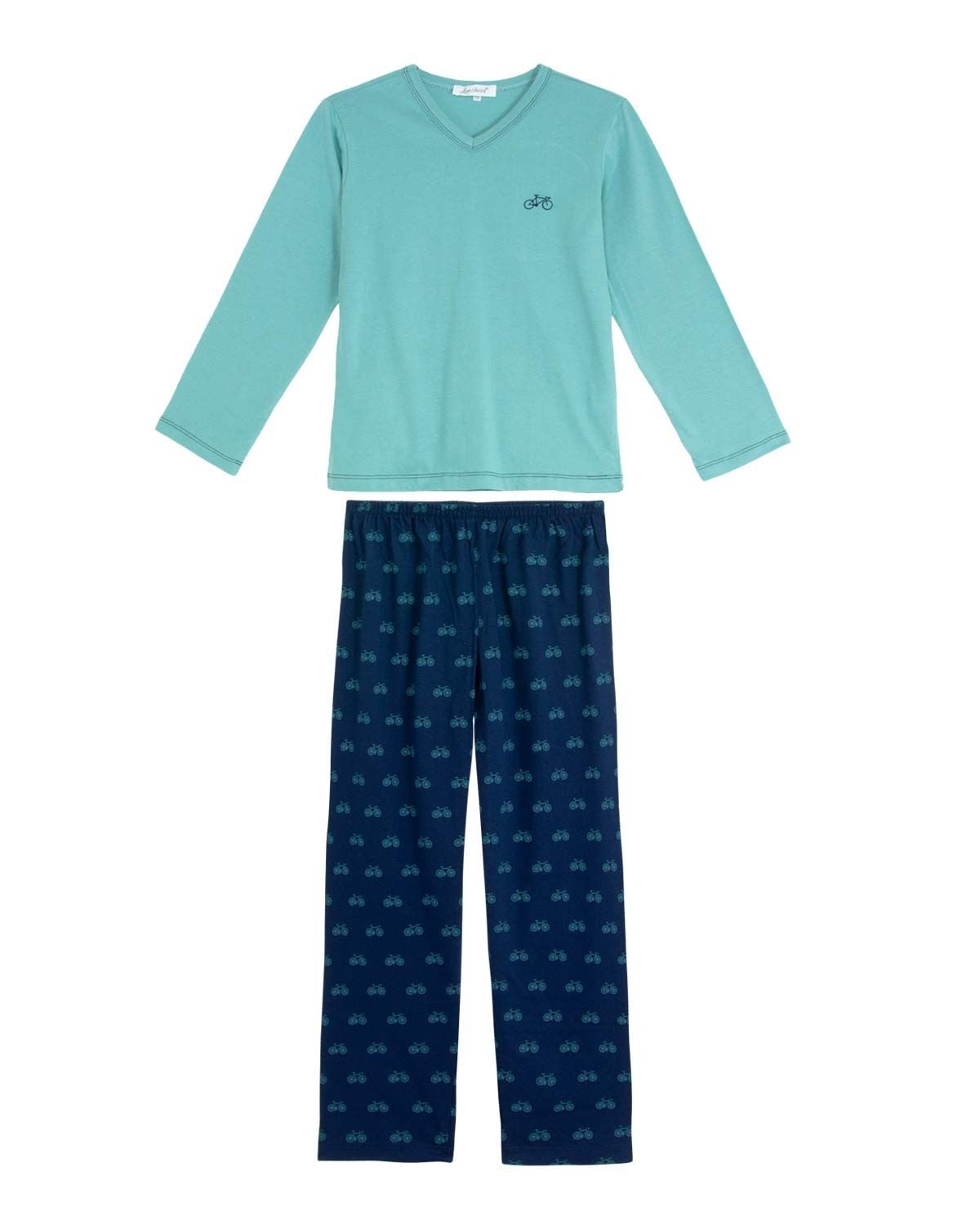 A hora de dormir é um momento único em família, e precisa ser divertido e acolhedor. E pijamas pensados com carinho são itens indispensáveis para completar esses momentos. Como este modelo que possui estampa super moderna e jovem de bike por toda a calça, acompanhada de camiseta manga longa completando o visual jovem para o menino moço. Todo em malha 100% algodão de alta qualidade, o que garante o conforto e a durabilidade da peça.