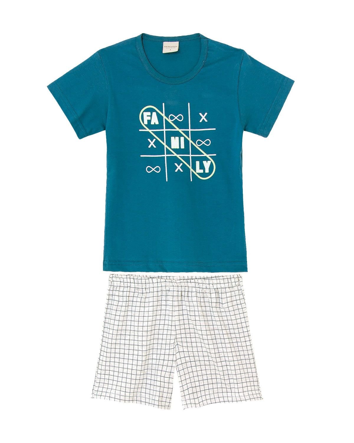 A hora de dormir é um momento único em família e precisa ser confortável e muito acolhedor. Esse modelo com blusa de manga curta possui estampa com um caça-palavras que brilha no escuro, deixando o pijama ainda mais alegre. O short xadrez possui um visual mais moderno e estiloso, do jeitinho que os pequenos gostam. A malha de algodão garante total conforto para noites tranquilas de sono.