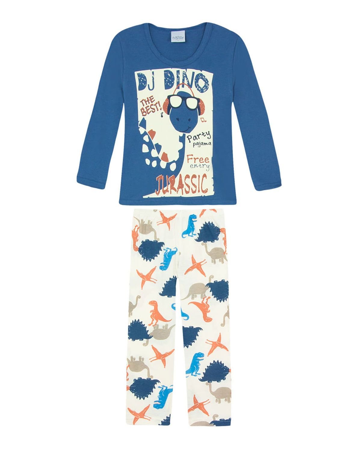 A hora de dormir é um momento único em família e precisa ser divertido, colorido e acolhedor. Para isso, este pijama tem modelagem que respeita a infância, com blusa manga longa com estampa moderna que brilha no escuro, e calça comprida toda estampada de dinossauros. Confeccionado em algodão, o que garante mais conforto e maior durabilidade da peça. Destaque para estampa que brilha no escuro!