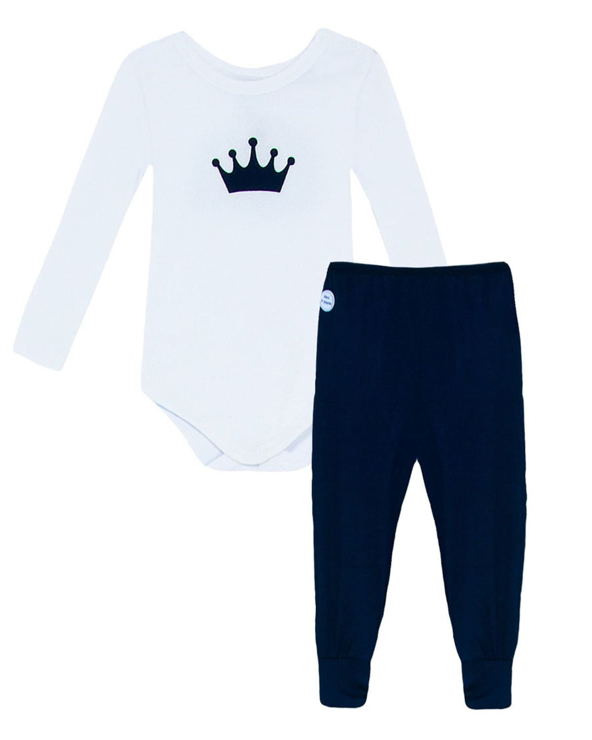 A hora de dormir é um momento único em família e precisa ser divertido e acolhedor. Um bebê deve estar bem confortável para noites bem dormidas. Para isso, este pijama é confeccionado em algodão, composto por body manga longa canelado e calça culote, numa modelagem confortável e estampa de coroa, ideal para presentear um príncipe que acaba de chegar. Destaque para embalagem super charmosa.