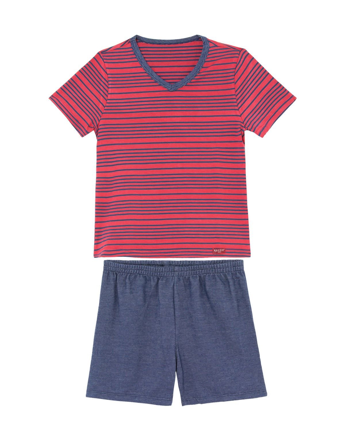 Para os meninos que gostam de um estilo básico, as listras são sempre a escolha certa. Nesse pijama elas aparecem em cores harmônicas, trazendo leveza e versatilidade. O conjunto é formado por blusa com manga curta com detalhe na gola que harmoniza com o short em malha com estampa que imita o jeans. Mais conforto e liberdade de movimentos, graças à perfeita combinação da viscoflex e malha stretch. Tecidos que se destacam pelo toque macio, durabilidade e ótimo caimento.