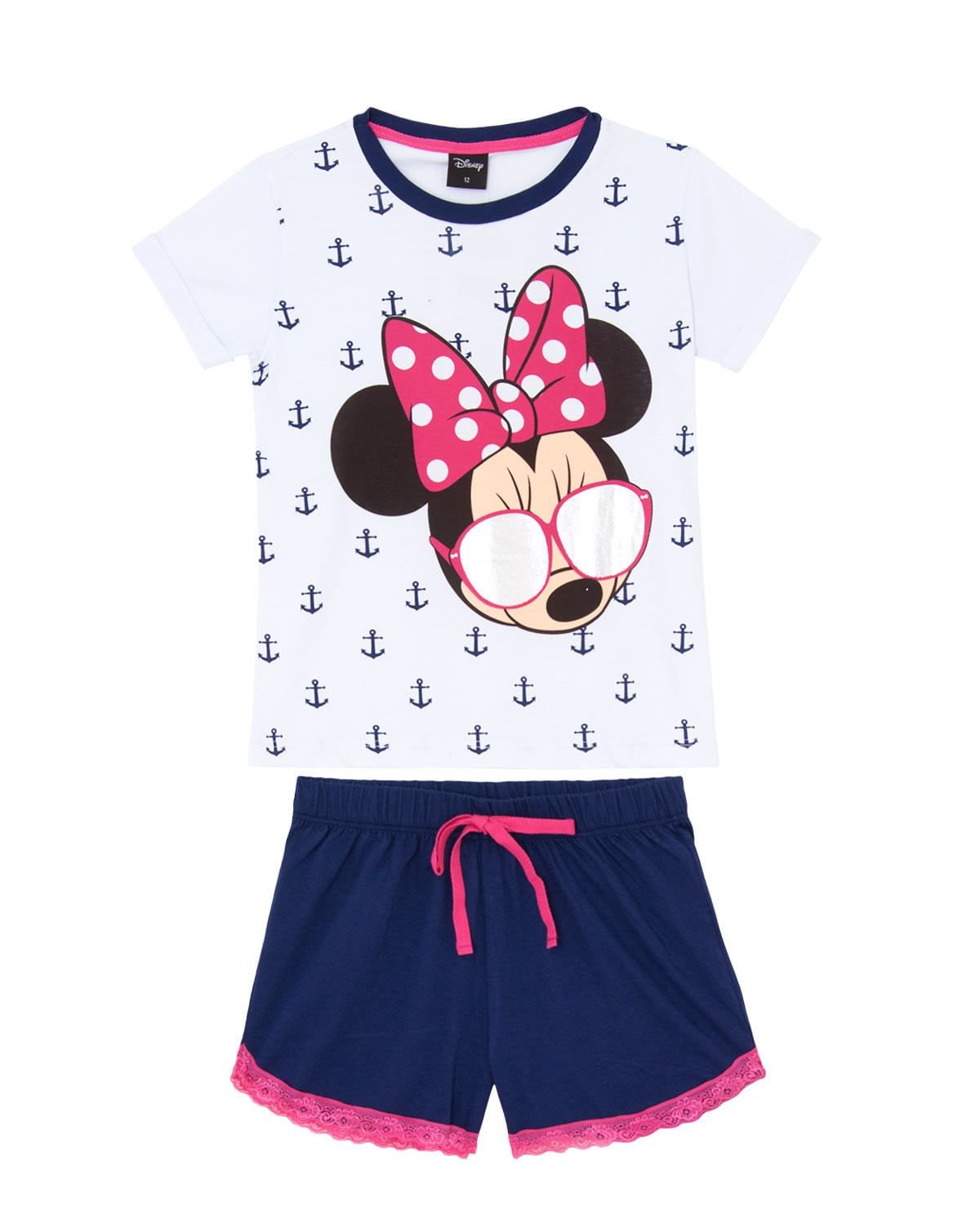 Impossível pensar em Disney sem lembrar da ratinha mais famosa no mundo, a Minnie! Juntando conforto e estilo, esse pijama juvenil possui blusa de manga curta com estampa de âncoras e silk com foil, deixando a lente do óculos metalizada. Seu short traz amarração falsa com cós de elástico e renda na barra, deixando a peça mais meiga. Todo confeccionado em 100% algodão, malha que oferece leveza e respirabilidade.