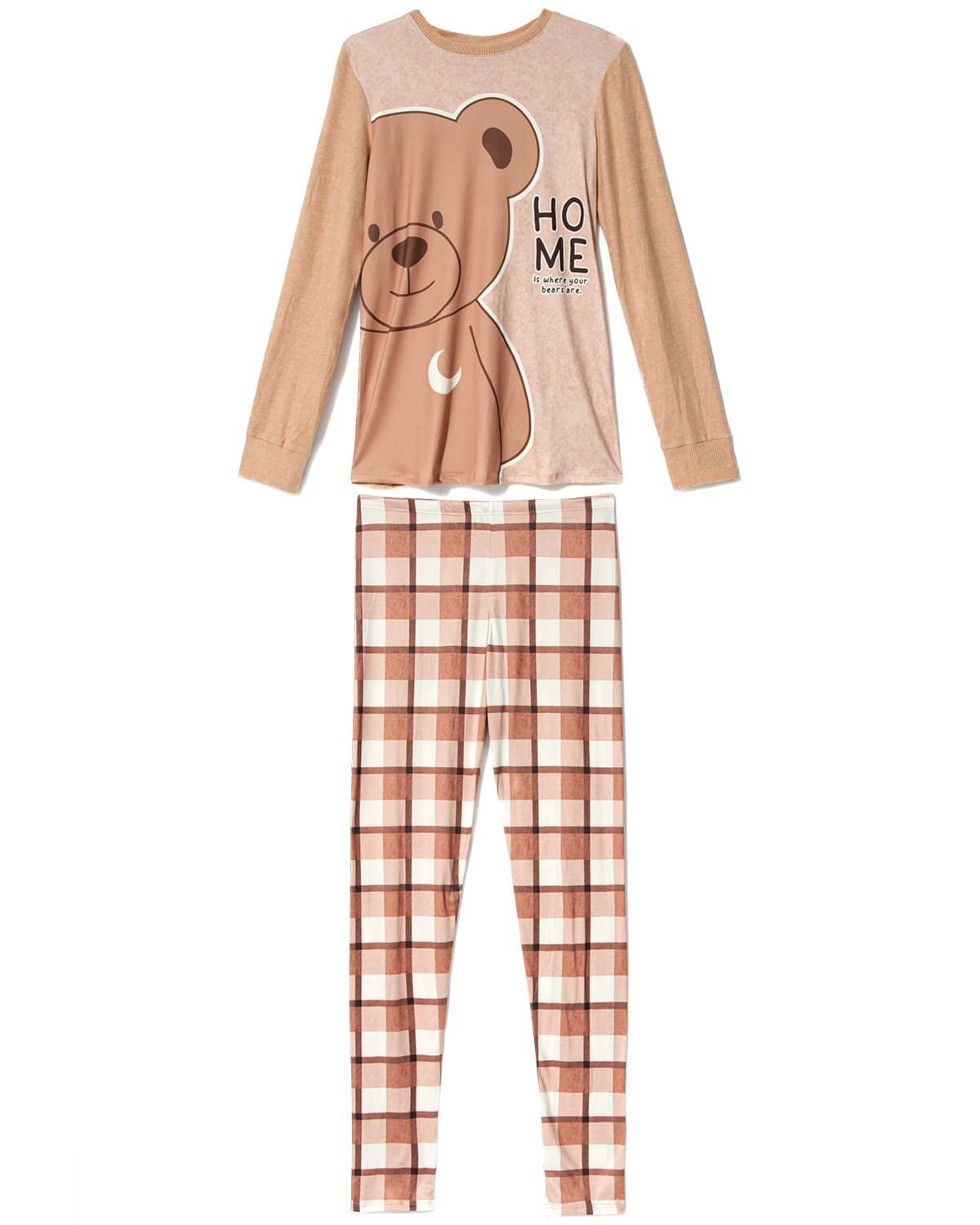 O ursinho que está conquistando o universo do sleepwear resolveu dar o ar da graça e tornar este pijama ainda mais adorável. A calça completa o conjunto com uma clássica estampa xadrez — elegante e sempre em alta no mundo da moda.