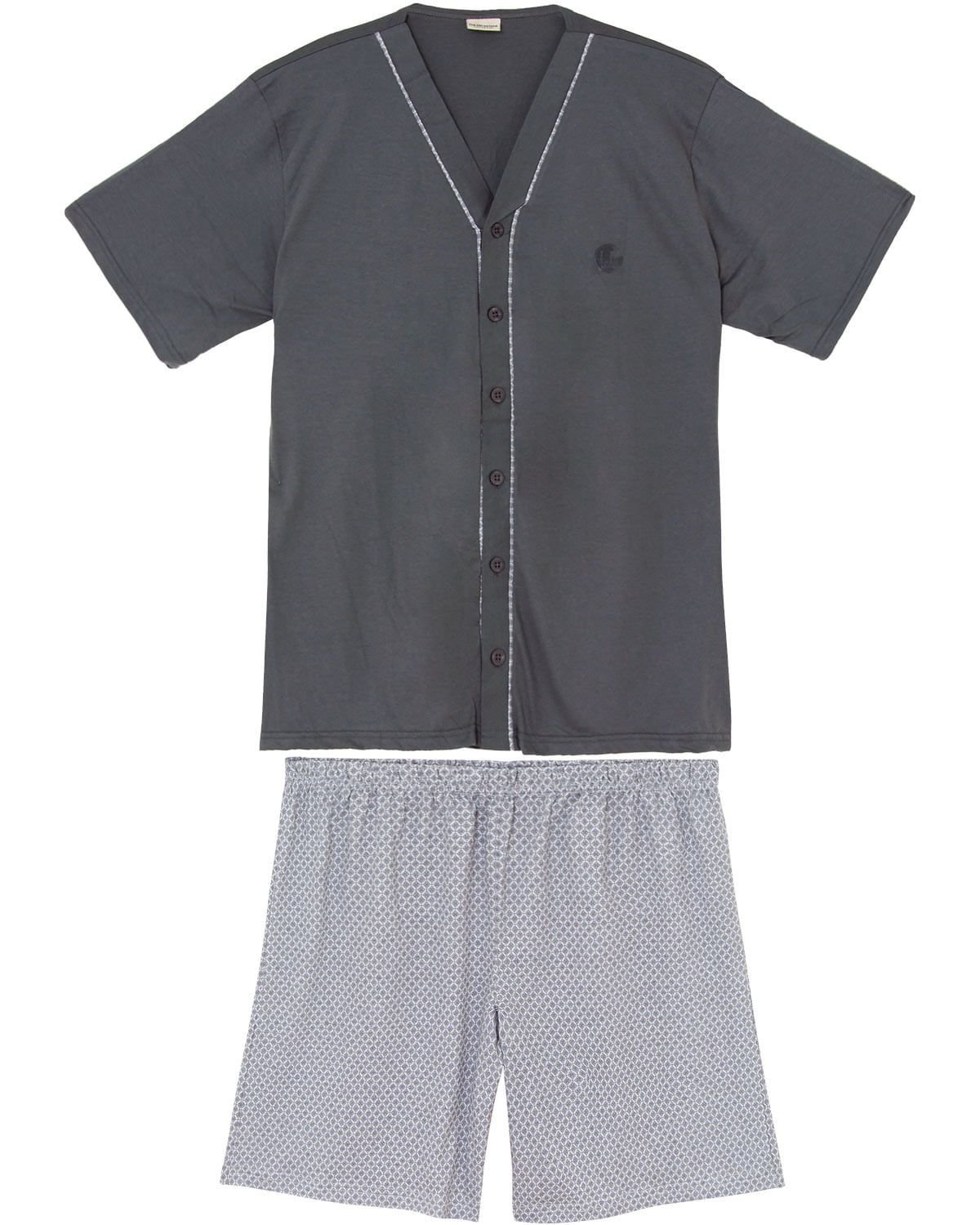 Dormir bem é algo necessário e para isso nada melhor do que um pijama bem confortável. Esse modelo clássico de manga curta com gola "V", é prático, pois possui abertura frontal com botões. O short com estampa geométrica, também é confeccionado em malha 100% algodão, proporcionando sensação de bem-estar nos momentos de descanso.