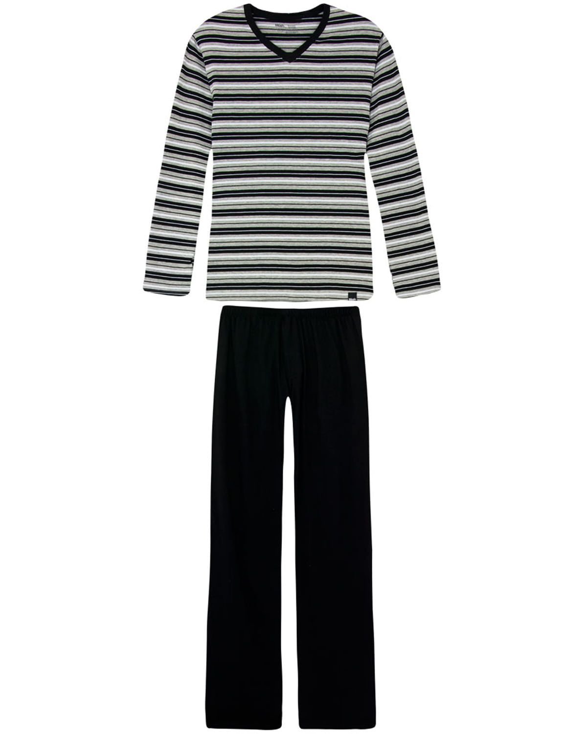 Este pijama é aquele básico necessário, com um charmoso decote em 'V', e todo em malha super macia e com estampa moderna e jovial, é o pijama ideal para aquecer e trazer conforto e elegância em suas noites de sono.