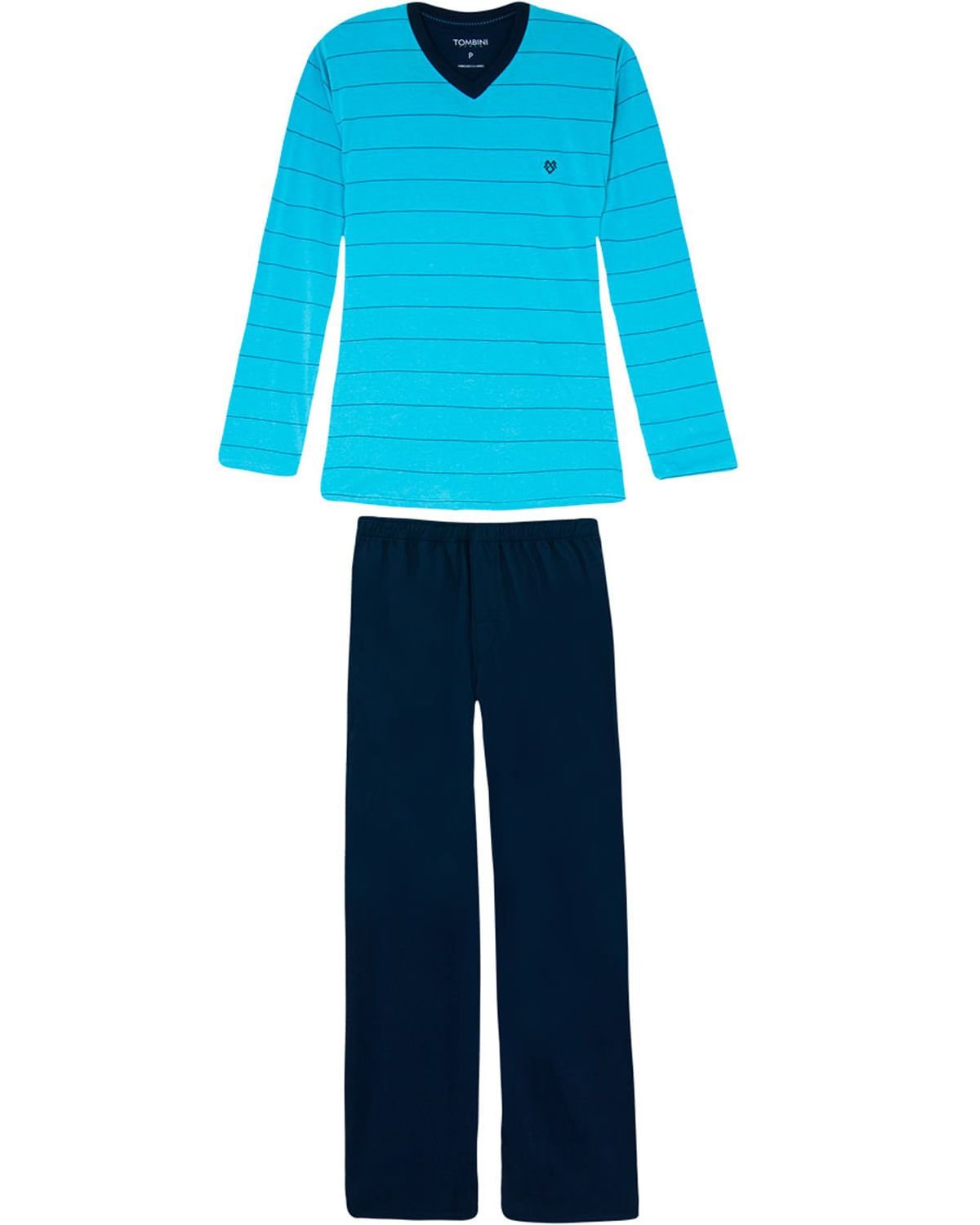 Este pijama é aquele básico necessário. Blusa com malha extremamente macia toda estampada de listras e gola em 'V', com calça longa e lisa. É o pijama ideal para aquecer e trazer conforto e elegância em suas noites de sono.