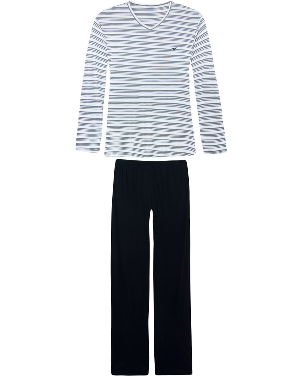 Este pijama é aquele básico necessário. Todo feito em malha fria de excelente qualidade, com camiseta estampada com listras horizontais, e calça comprida lisa em modelo tradicional. É o pijama ideal para aquecer e trazer conforto e elegância em suas noites de sono.