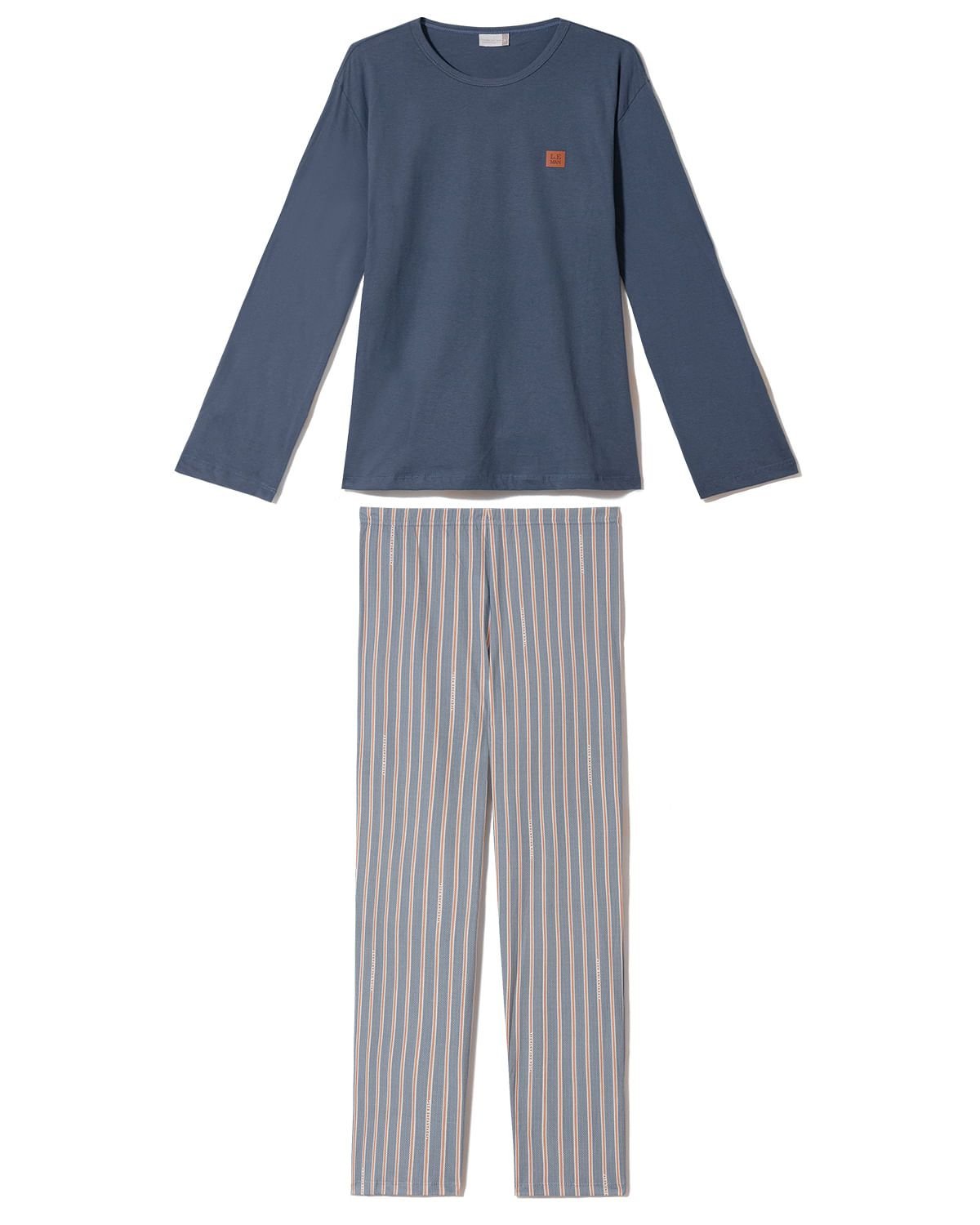 Com este pijama os momentos de familia serão ainda mais divertidos. Confeccionado em 100% algodão, além da produção ser sustentável, as fibras, antes mesmo de se tornarem um tecido, passam pelo biopolimento, que consiste na separação de fibras mais longas e limpas, para que o pijama tenha aparência de novo por muito mais tempo e ofereça maciez ao entrar em contato com a pele. Ah, e não poderia me esquecer, esse beneficiamento torna este tecido hipoalergênico, ideal para quem tem a pele mais sensível. O conjunto conta com blusa de mangas longas e gola redonda, já a calça traz listras.