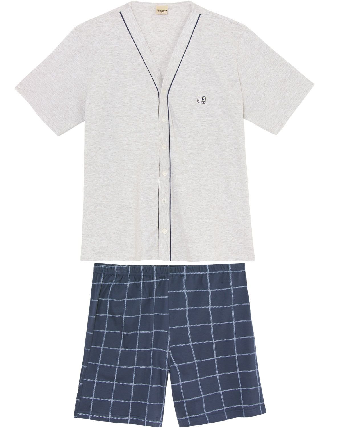 Pijama com camiseta manga curta aberta por botões e short estampado com cós de elástico. Perfeito para homens de estilo clássico, que gostam de conforto, elegância e cores sóbrias. Confeccionado em malha de algodão, tecido com excelente elasticidade, toque suave e macio.