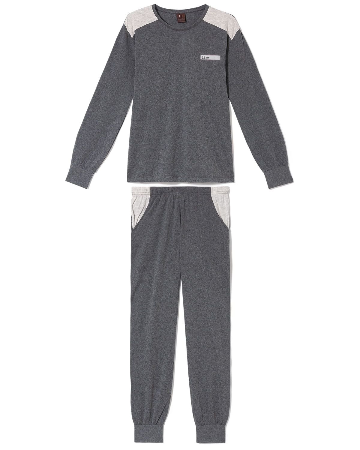 O pijama de algodão é uma peça essencial, principalmente para os homens que priorizam sempre o conforto. A blusa de mangas longas, possui gola careca e recorte nos ombros, já a calça tem como destaque o tom contrastante nos bolsos, e punhos no barrado. Ótima opção para aproveitar o melhor do descanso com muito aconchego.