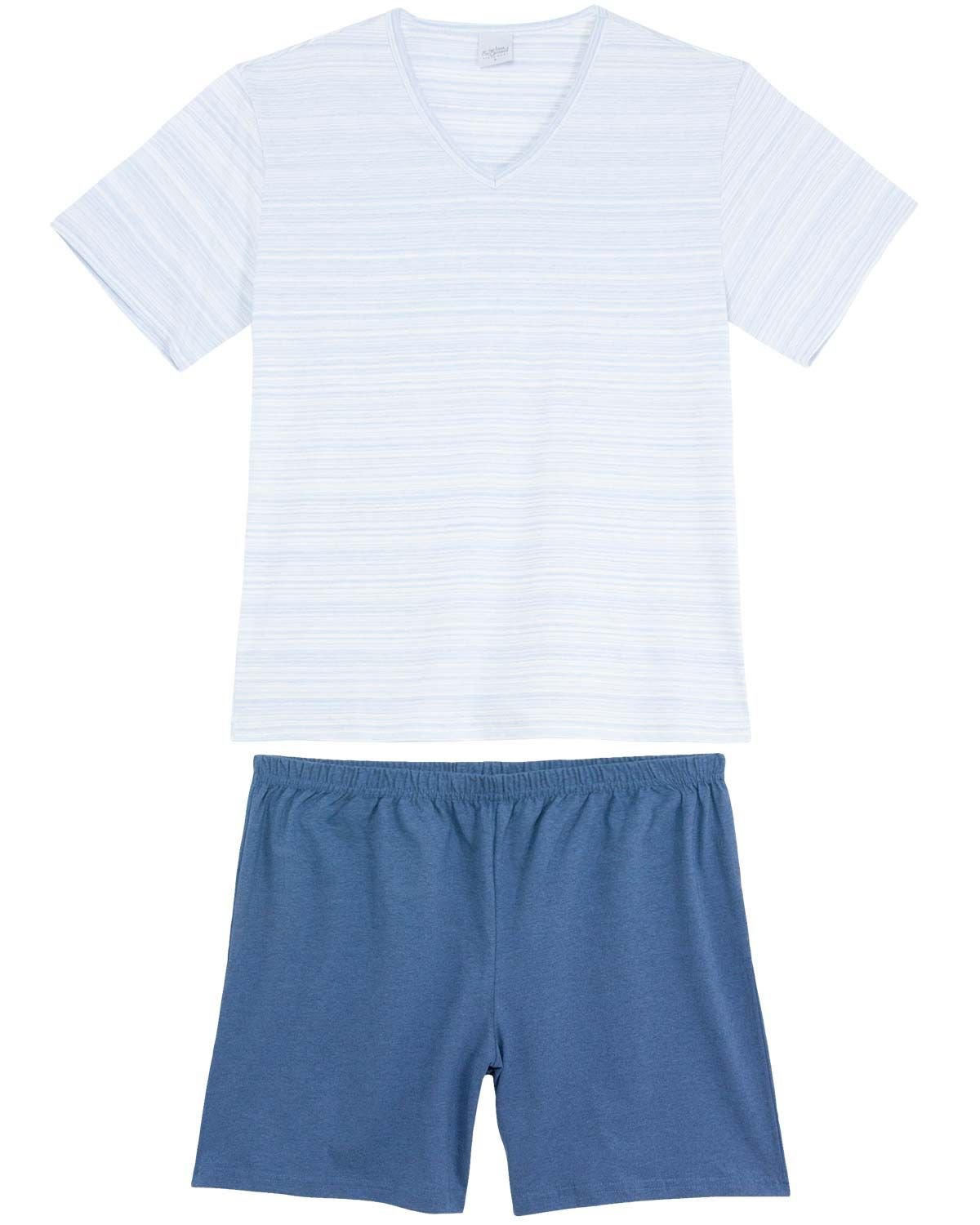 Aquele básico necessário, este pijama é o tipo de peça que todo homem tem que ter no guarda roupa. Todo feito em malha de algodão com visvose, o que proporciona um toque suave na pele, com excelente qualidadee durabilidade. Modelagem com corte tradicional e gola em 'V' na camiseta com estampa de listras, acompanhada de short liso. É o pijama ideal para trazer conforto e elegância em suas noites de sono.