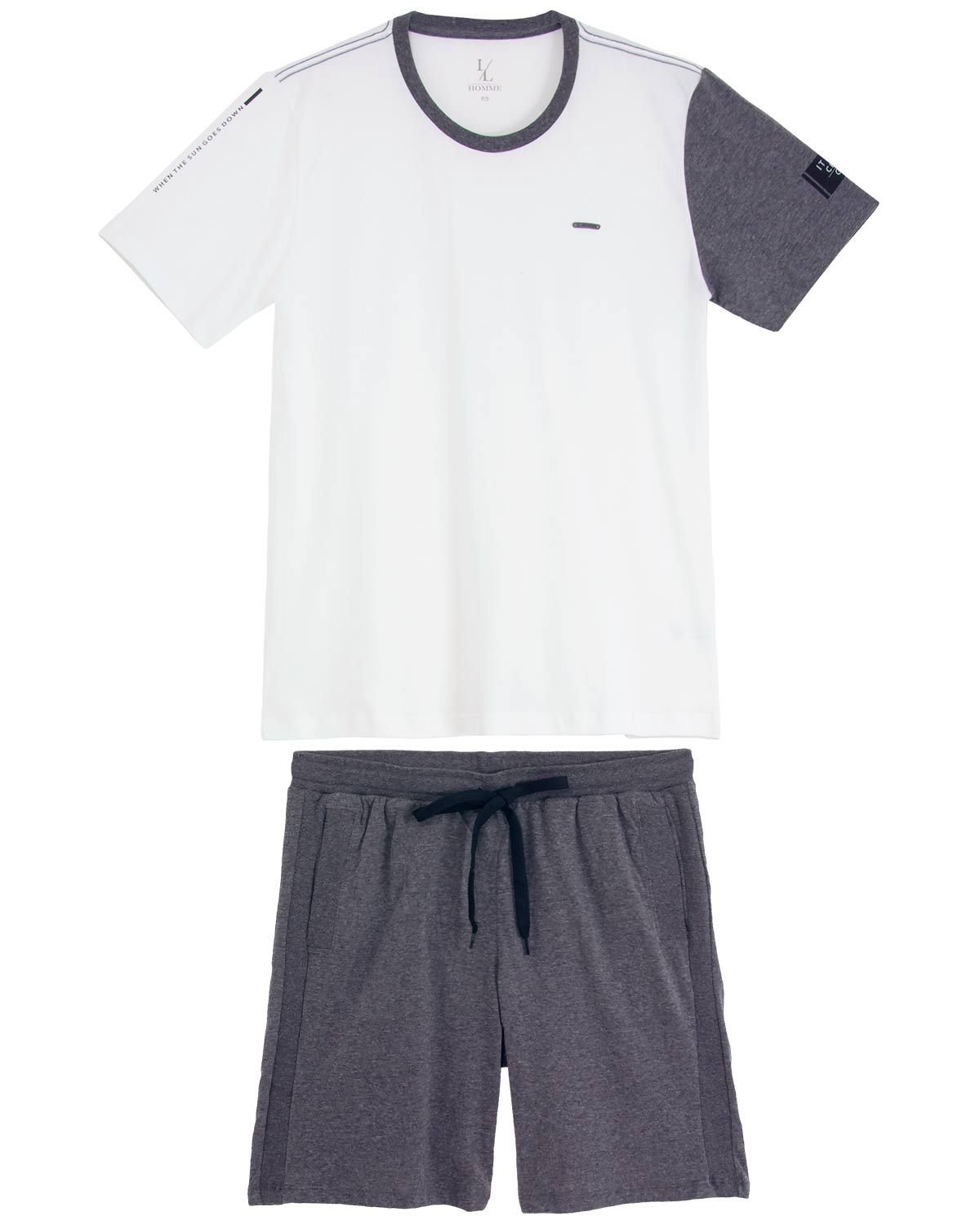O pijama clássico é aquele ítem que todo homem precisa ter em seu guarda-roupa. Esse modelo com blusa de manga curta é confeccionado em algodão super macio de excelente qualidade, possui decote "U" e as frases em inglês nas mangas" When the sun goes down" e "It all chan ges". O short possui amarração no cós, facilitando a regulagem. Ideal para homens modernos.
