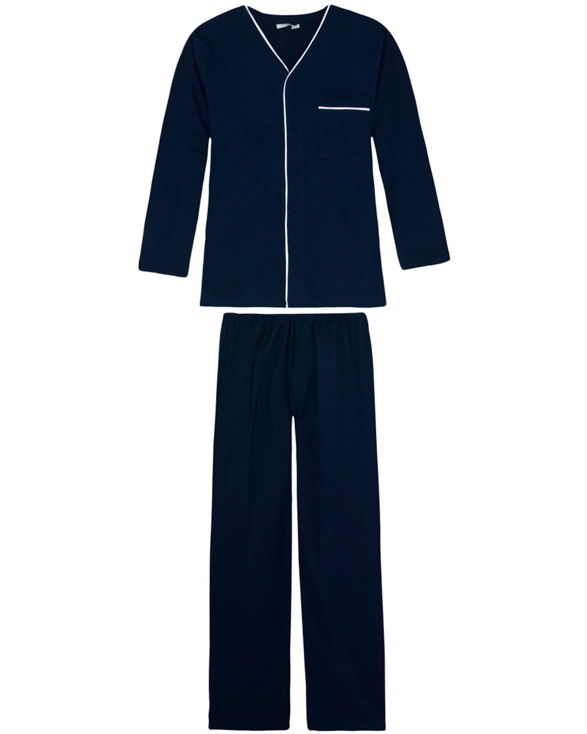 Perfeito para os homens que preferem aquele estilo mais básico e elegante, este pijama é confeccionado em malha 100% algodão e possui modelagem mais clássica, blusa manga longa com abertura em botões e decote "V". Possui também calça básica compondo um visual clean.