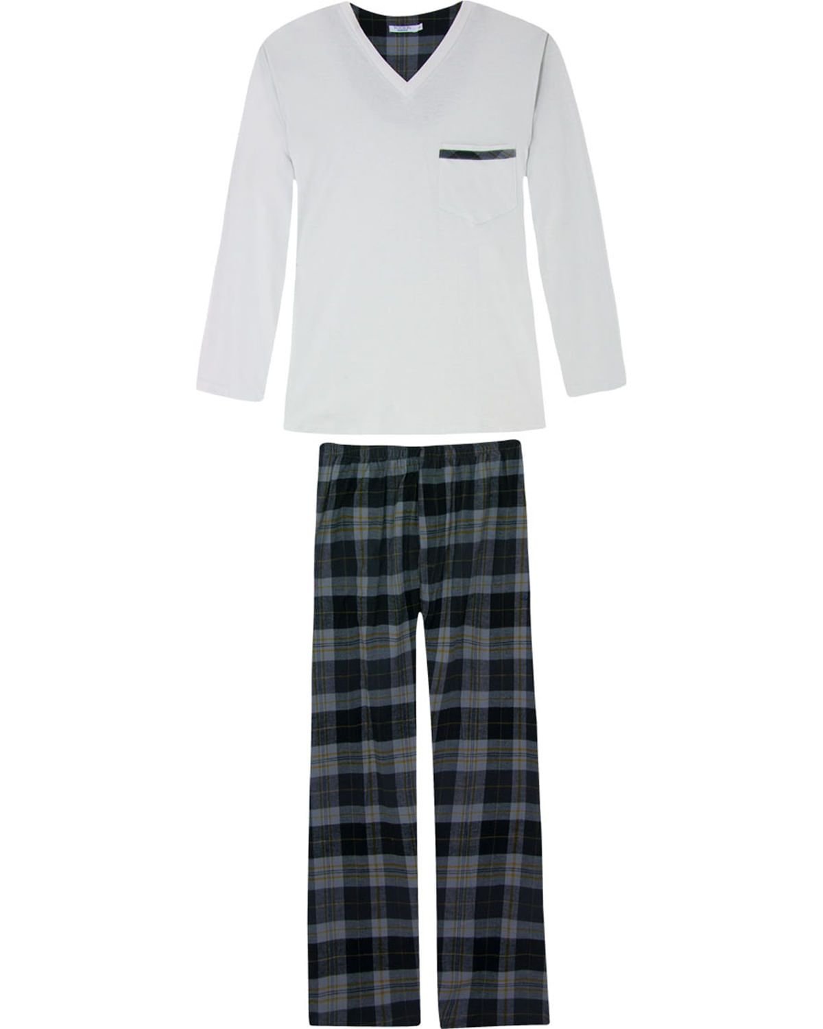 Este pijama é aquele básico necessário, com um charmoso decote em 'V' na camiseta manga longa em malha extremamente macia e moderna, acompanhada de calça xadrez em flanela. É o pijama ideal para aquecer e trazer conforto e elegância em suas noites de sono. Destaque para bolso na camiseta.