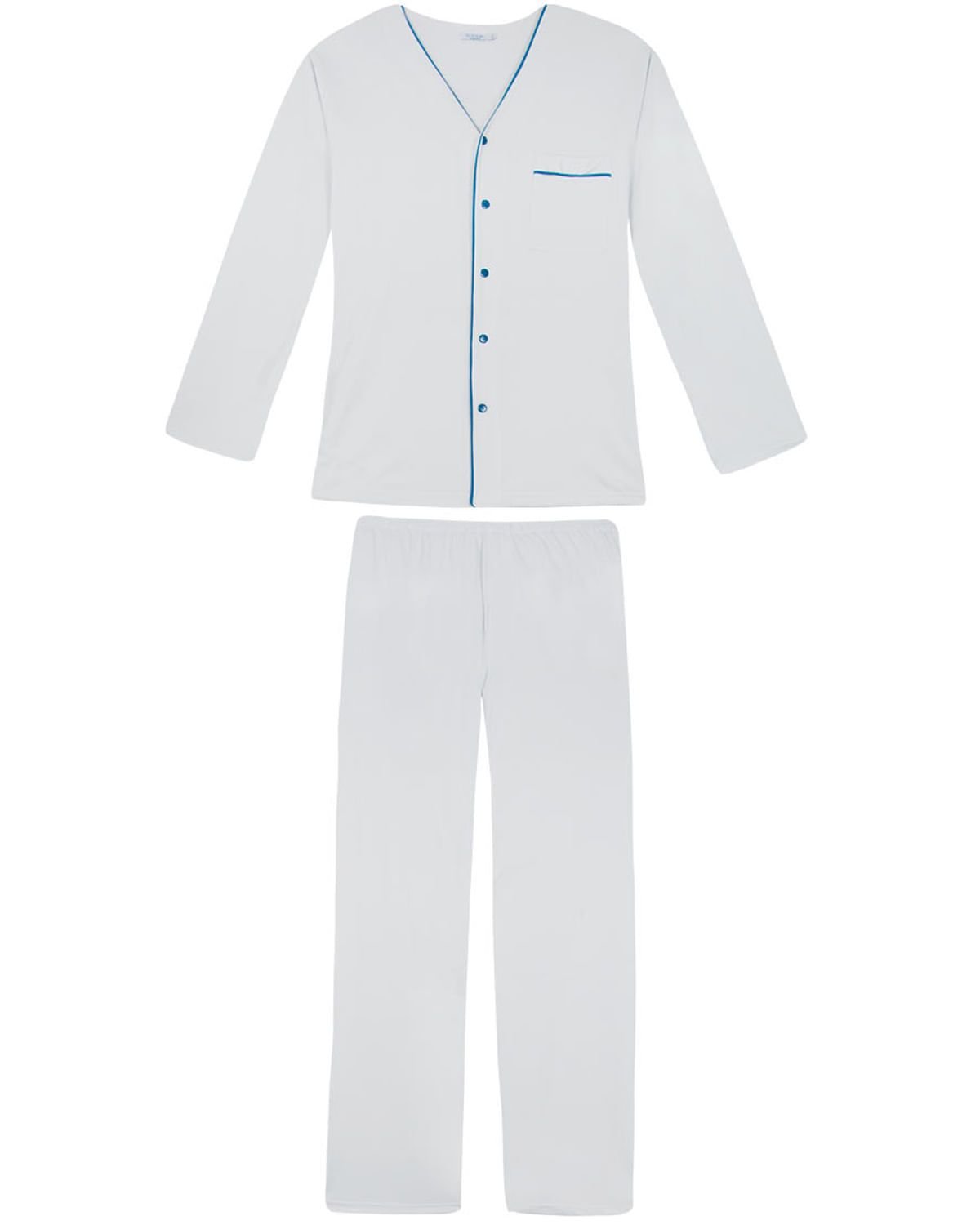 Perfeito para os homens que preferem aquele estilo mais básico e elegante, este pijama é confeccionado em malha 100% algodão e possui modelagem mais clássica, blusa manga longa com abertura em botões e decote "V". Possui também calça básica, compondo um visual clean.