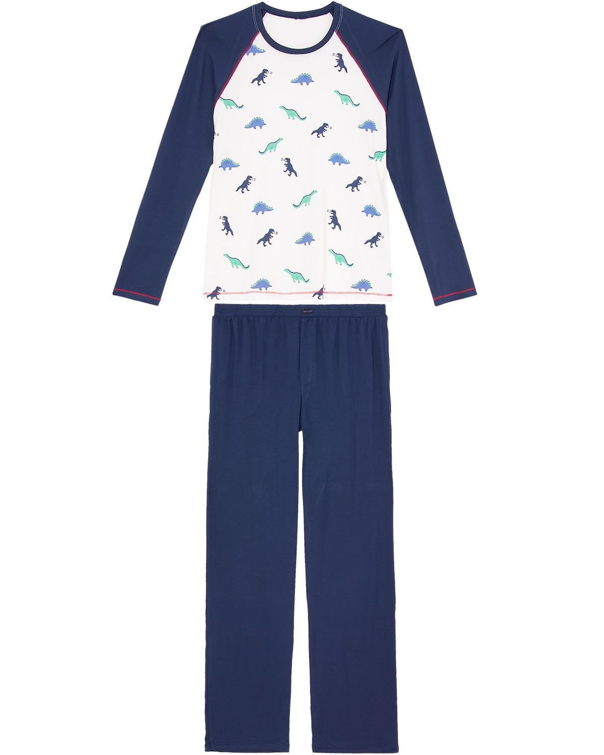 Para aquelas noites de temperaturas mais amena, é essencial um pijama confortável, como este, todo confeccionado em visco premium, viscolycra de excelente qualidade com tratamento especial da Any Any, proporcioanando uma sensação de frescor e leveza ao decorrer do uso. Sua blusa manga longa com estampa de dinossauros e calça lisa com bolsos, traz um visual divertido e jovial da peça.