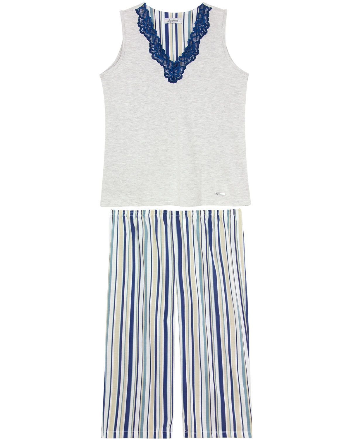 O pijama pescador é aquela peça necessária que todo mulher precisa ter. Confeccionado em algodão, leve e confortável, esse modelo possui blusa regata com renda no decote, dando o toque feminino e delicado para a peça, as listras da calça deixa o conjunto ainda mais charmoso. Ideal para as noites de temperaturas mais amenas.