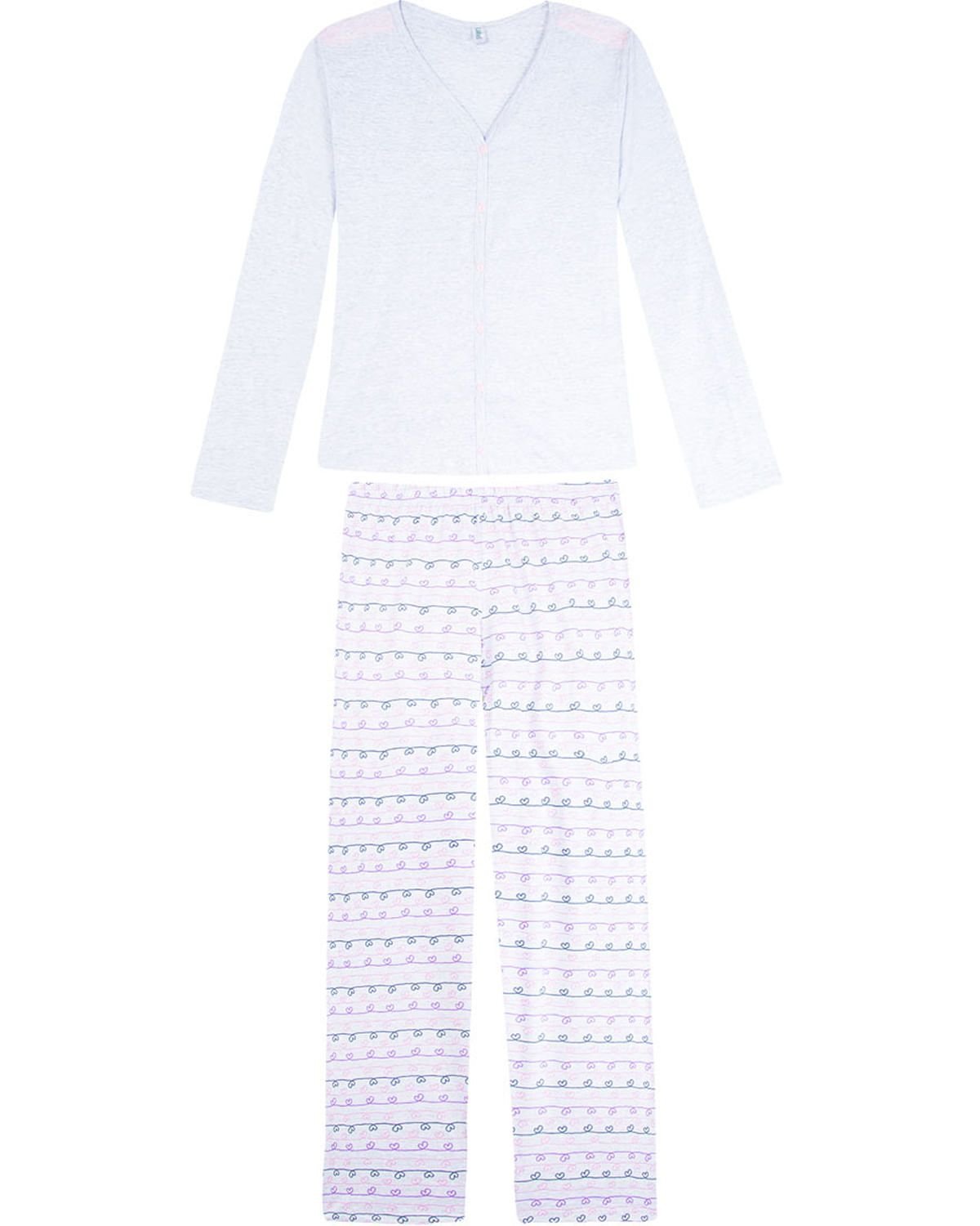 Este pijama é ideal para escolhas delicadas, femininas e confortáveis. Feito de algodão deixando suas noites mais alegres. com acabamento em renda no ombro, delicada estampa de coração na calça, e abertura frontal com botões, torna-se ideal para atender as necessidades pós cirúrgicas, limitações físicas e de amamentação, aquecendo suas noites de inverno com beleza e conforto.