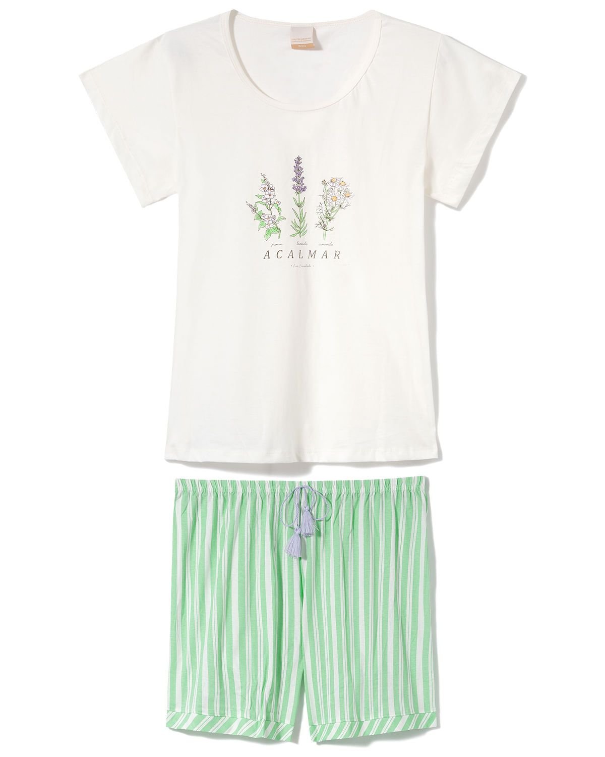 Você sentirá a diferença que faz o tratamento do algodão ao vestir a maciez deste pijama, que parece te abraçar.