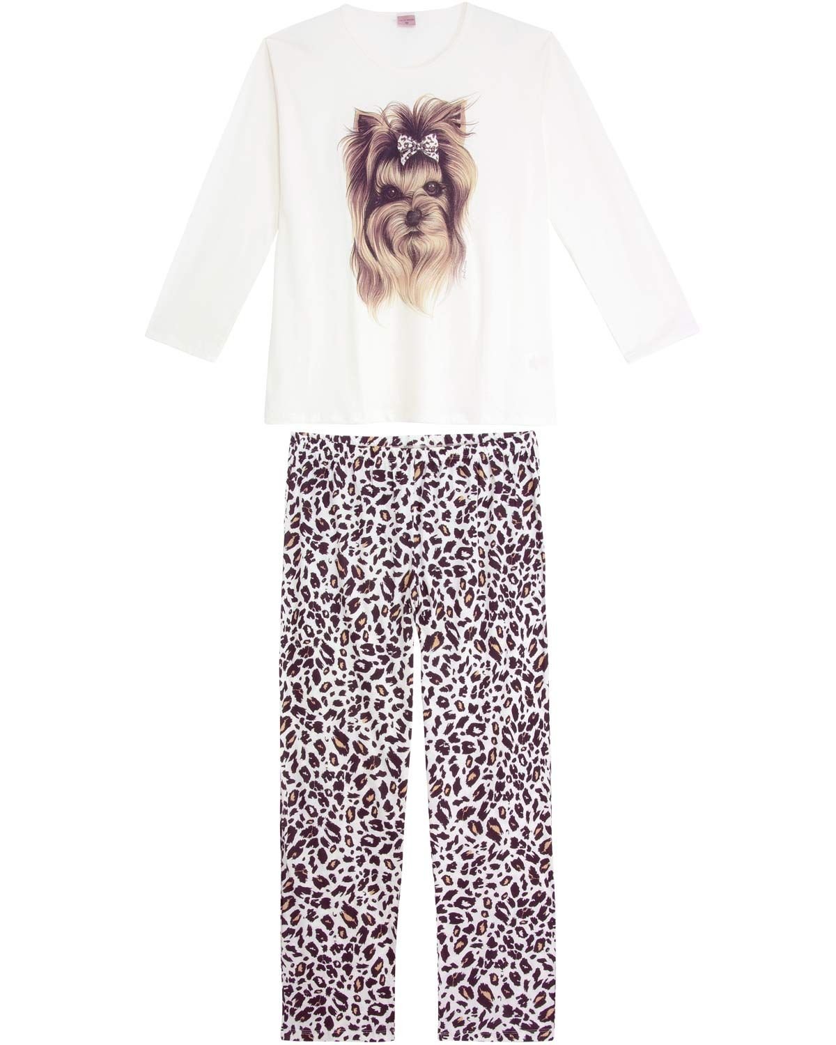 As estampas de cachorrinhos fazem o maior sucesso no mundo dos pijamas, pois trazem mais alegria para as noites de sono. Esse pijama plus size possui manga longa com a estampa queridinha de yorkshire e calça de oncinha, na tendência animal print, proporcionando aquele visual divertido e fofo. Todo confeccionado em algodão, ele melhora a qualidade do sono, pois é um tecido macio e muito confortável, ideal para aqueles dias em que o frio ameaça tomar conta.