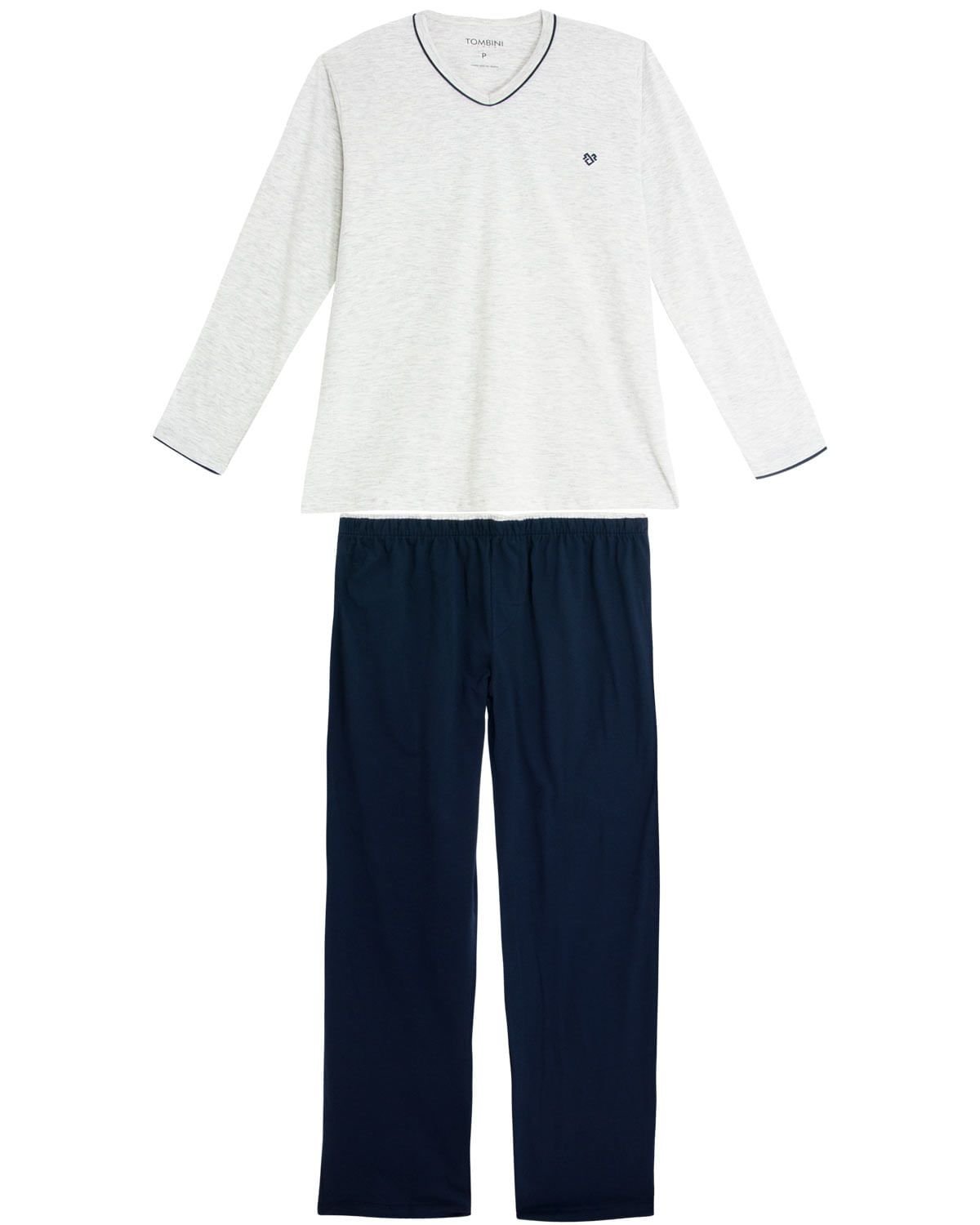 Este pijama plus size longo é perfeito para esquentar as suas noites de inverno. Todo feito em algodão de excelente qualidade e decote em 'v', possui também detalhes em azul, que garantem o estilo e conforto para noites de sono tranquilas e agradáveis.