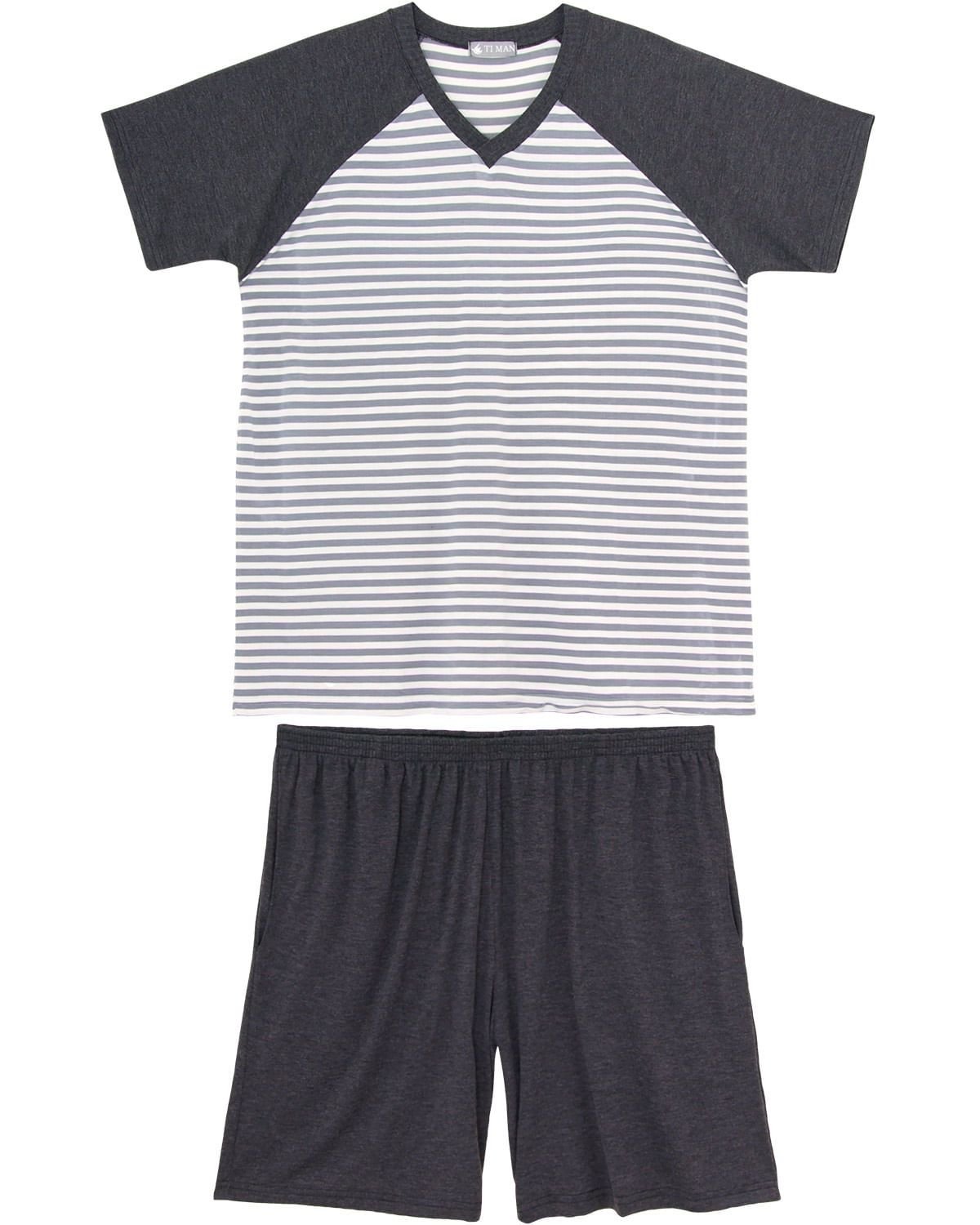 Trazendo toda elegância das listras, esse pijama masculino plus size é composto por camiseta manga raglã e short liso com bolsos em suas laterais. O conjunto pode ser usado como pijama ou como uma confortável opção de look homewear. O mix de malhas possui muita elasticidade e um excelente caimento, além de ter um toque super leve e macio.