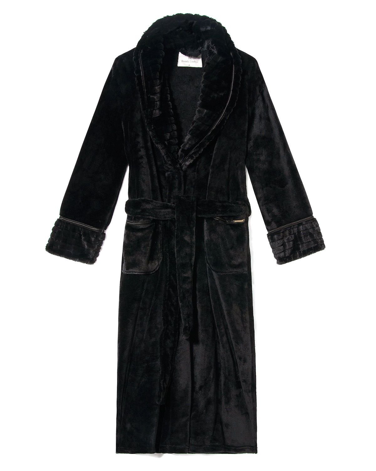 O robe é uma peça essencial no closet feminino, por isso trouxemos este modelo longo com bolsos, cordão interno e faixa para melhor ajuste no corpo. Confeccionado em Soft Fleece, tecido de toque macio com tecnologia que proporciona conforto térmico para os dias frios. Os detalhes ficam por conta do acabamento acetinado e da pelúcia texturizada nos punhos e na gola, já sua cor elegante traz ainda mais sofisticação para os momentos de descanso.