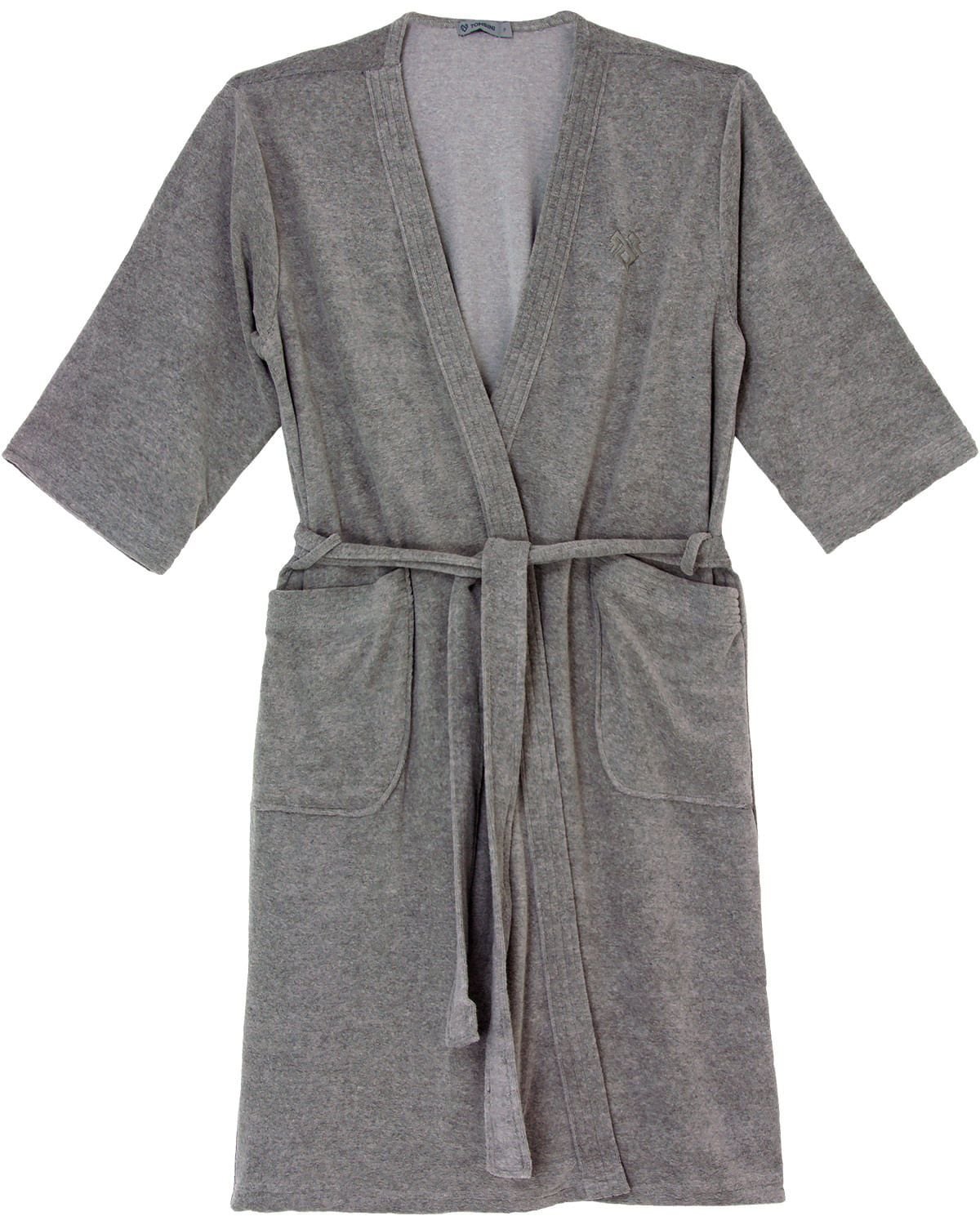 Este robe masculino é a peça ideal para ser usada após o banho ou também nos momentos de descanso. Esse modelo de mangas 3/4, possui faixa para amarração e bolsos nas laterais, é todo confeccionado em algodão atoalhado, proporcionando muito conforto e ótima sensação sobre a pele.