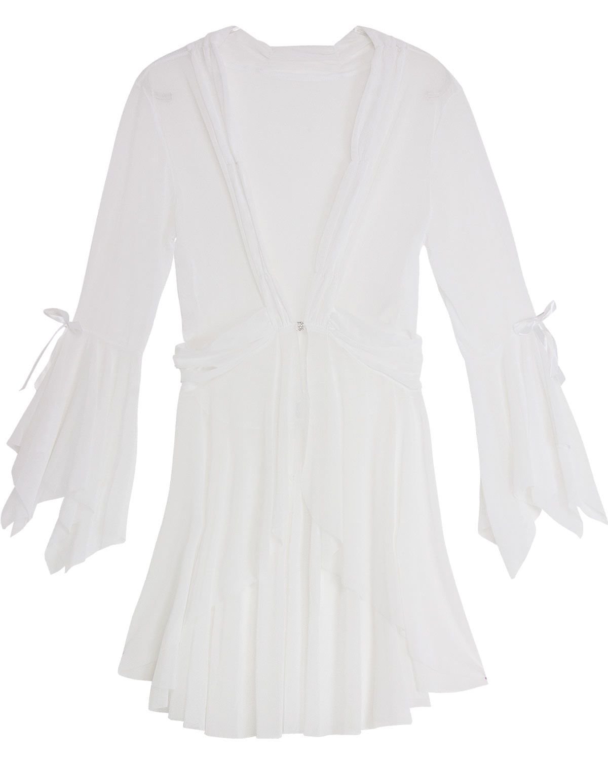 Para momentos únicos e especiais, este peça é perfeita. Uma peça sofisticada, toda em tule com sutis detalhes numa composição romântica e sensual. Com mangas largas estilo princesa, e faixa drapeada na cintura que acompanha o visual feminino e sexy.