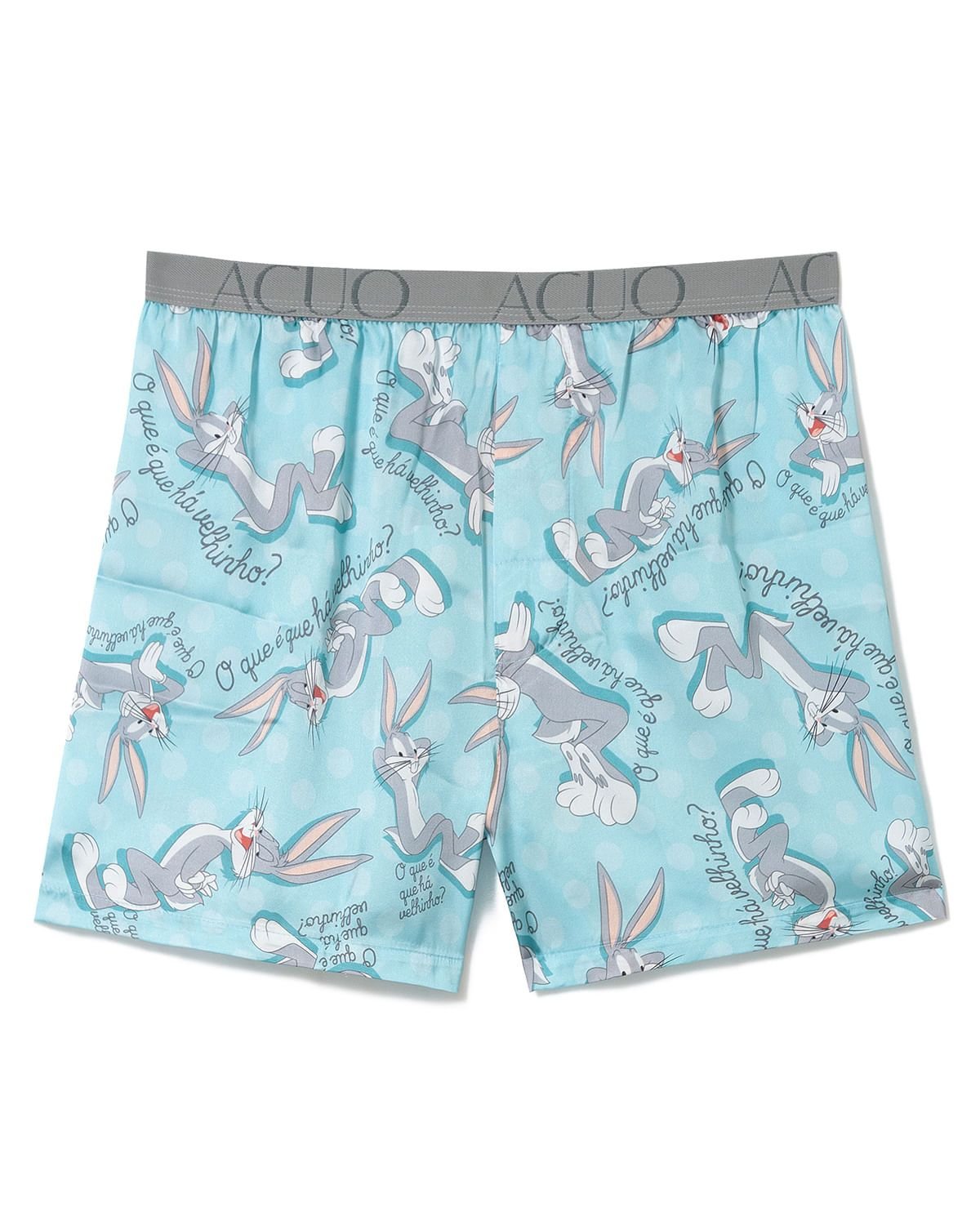 Esta samba-canção irá transformar os momentos de descanso dos homens, pois é confeccionada em cetim com toque de seda, um tecido conhecido por sua aparência sofisticada e sua textura suave ao toque, proporcionando conforto. A peça possui um cós elástico com bordado discreto do logo da marca, e estampa adorável do coelhinho mais famoso das telinhas, o Pernalonga.