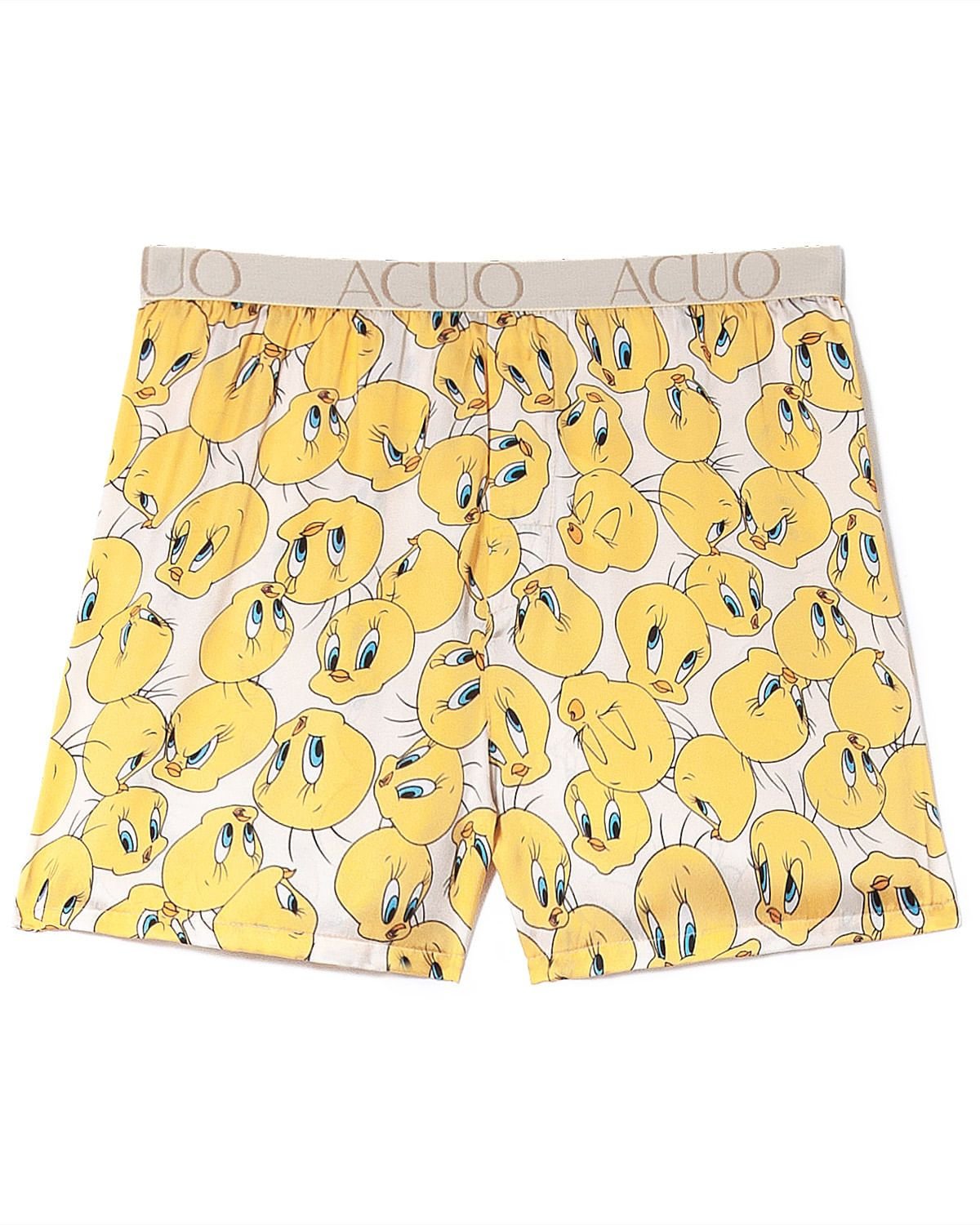 Conseguimos trazer o piu-piu para divertir ainda mais os momentos de descanso. Esta samba-canção é confeccionado em cetim com toque de seda, tecido leve e macio, garantindo o conforto a qualquer hora do dia. Destaque para a linda estampa de piu-piu.