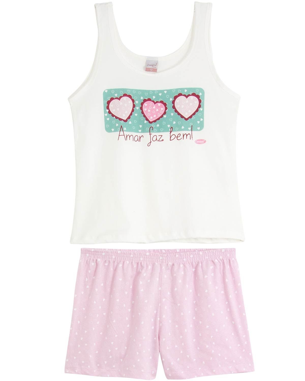 Conforto e estilo precisam estar presentes também na hora de dormir, pois alegram as noites e as deixam encantadoras. Esse modelo possui camiseta regata com estampa de corações e frase divertida e fofa, e compondo o visual feminino, um short com estampa de coração. Para garantir a leveza e o aconchego nada melhor do que a malha de ótima qualidade e 100% algodão, pois não esquenta, tornando-se ideal para as noites de verão em que o calor ameaça tomar conta. Impossível não se apaixonar.
