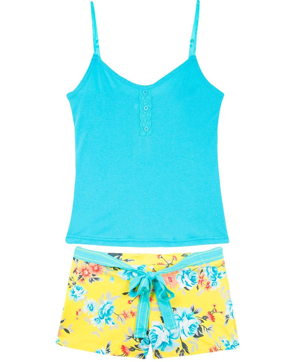 Este short doll é aquele aconchego necessário e ideal para suas noites de temperatura mais quente. Com regata em malha canelada extremamente leve e macia e short em algodão com graciosa estampa floral, completando o visual alegre e colorido na peça de verão.