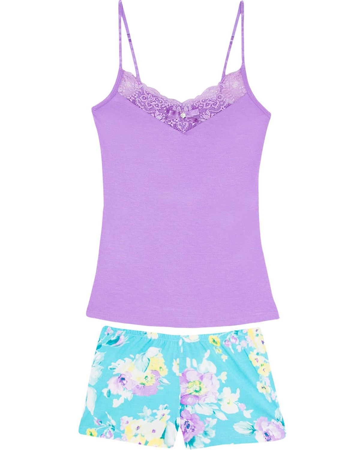 Este short doll é aquele aconchego necessário e ideal para suas noites de temperatura mais quente. Com regata em viscose extremamente leve e macia, com acabamento em renda e com alças finas e reguláveis, short também em viscose com graciosa estampa floral, combinando o visual alegre e colorido na peça de verão.