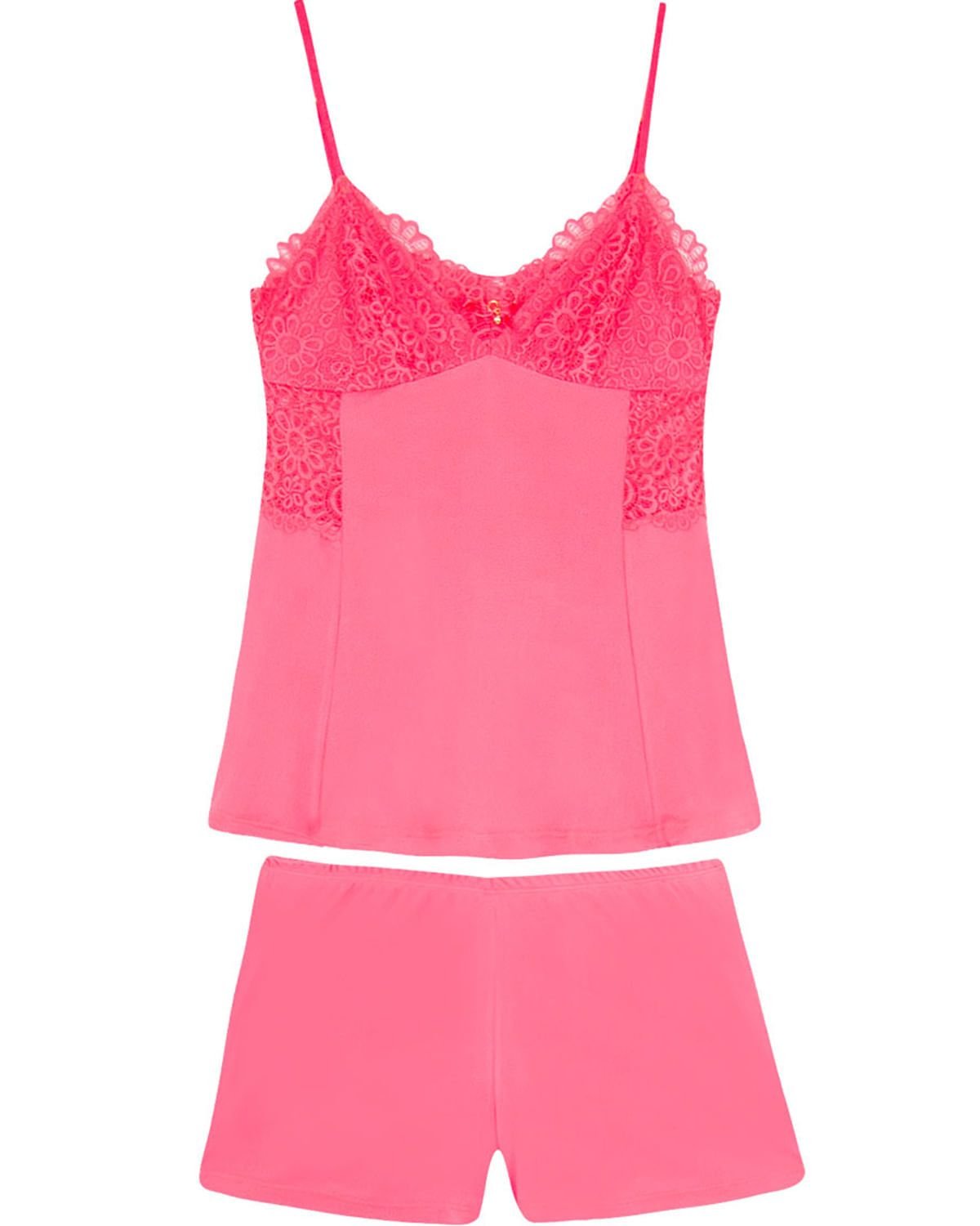 Este short doll é confeccionado em malha fria de excelente qualidade, o que deixará seu sono mais confortável com sensação de frescor ao longo da noite. Em modelagem moderna e renda pontuais no busto e laterais, o que deixam a peça muito mais feminina e delicadamente sensual. Destaque para alça com regulagem e pingente de strass aplicado no lacinho de cetim no busto.