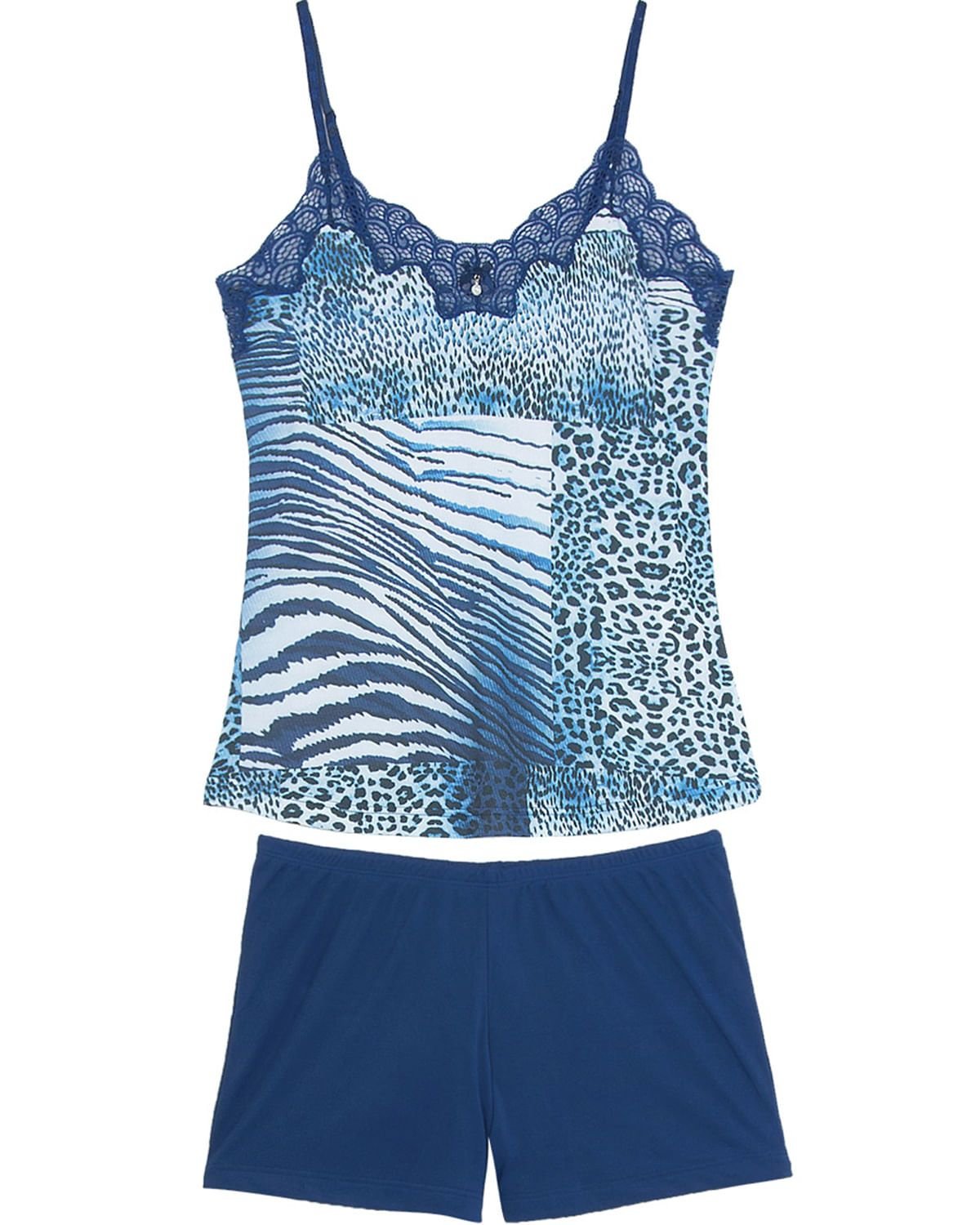 O short doll é sempre a peça favorita para noites confortáveis no calor. Este modelo todo em microfibra de excelente qualidade, com blusa em animal print com detalhe em renda no busto, acompanhada de short liso, perfeito para proporcionar conforto e frescor em noites de temperaturas mais quente. Destaque para alças reguláveis.