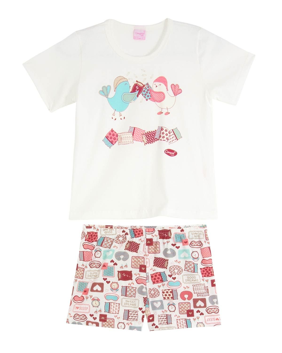 Pijama infantil tem que ser aquele em que desperta na criança a alegria necessária para uma noite de sono tranquila e momento únicos de muita diversão em família. Esse modelo possui camiseta de manga curta com estampa fofa de passarinhos, e short todo cheio de desenhos fofos que as meninas adoram. O conforto e aconchego são garantidos pela máxima qualidade da malha confeccionada em 100% algodão, que não esquenta e garante leveza. Ideal para aqueles dias quentes em que o verão toma conta.