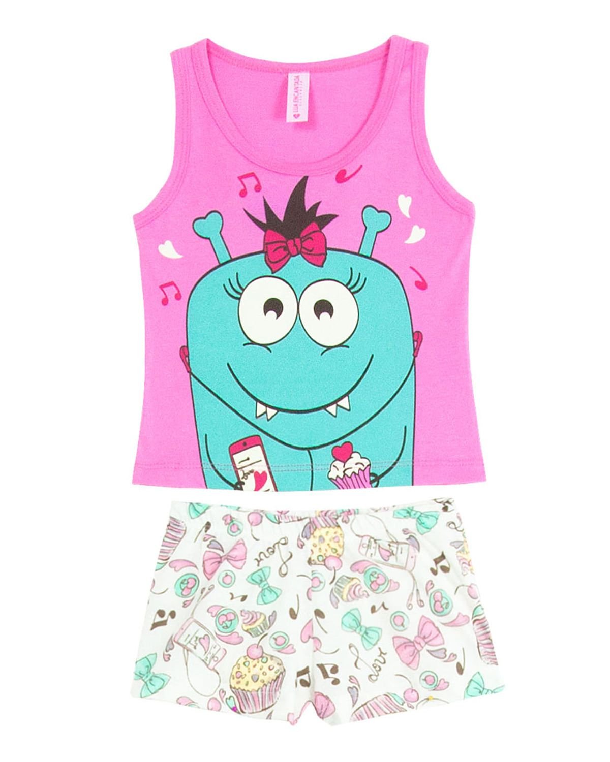 A hora de dormir é um momento único em família e precisa ser divertido, colorido & muito acolhedor. Para isso, pijamas lúdicos em modelos que respeitam a infância são essenciais, como este short doll todo em algodão, com estampa graciosa e colorida de doces no short, e na camiseta estampa de uma simpática monstrinha que brilha no escuro.