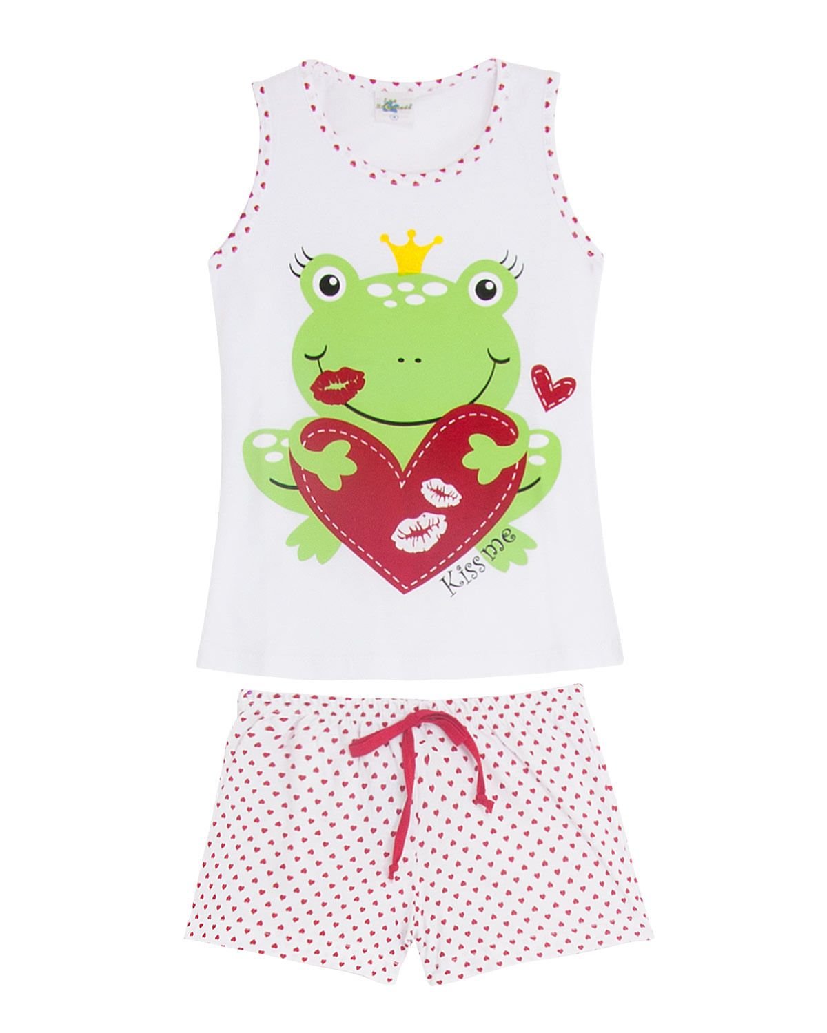 A hora de dormir é um momento único em família e precisa ser divertido, colorido & muito acolhedor. Para isso, pijamas lúdicos em modelos que respeitam a infância são essenciais, como este short doll todo em algodão, com estampa graciosa e alegre de sapinho, com camiseta regata e short. O pijama ideal para colorir o cotidiano e encantar os para momentos únicos em família.