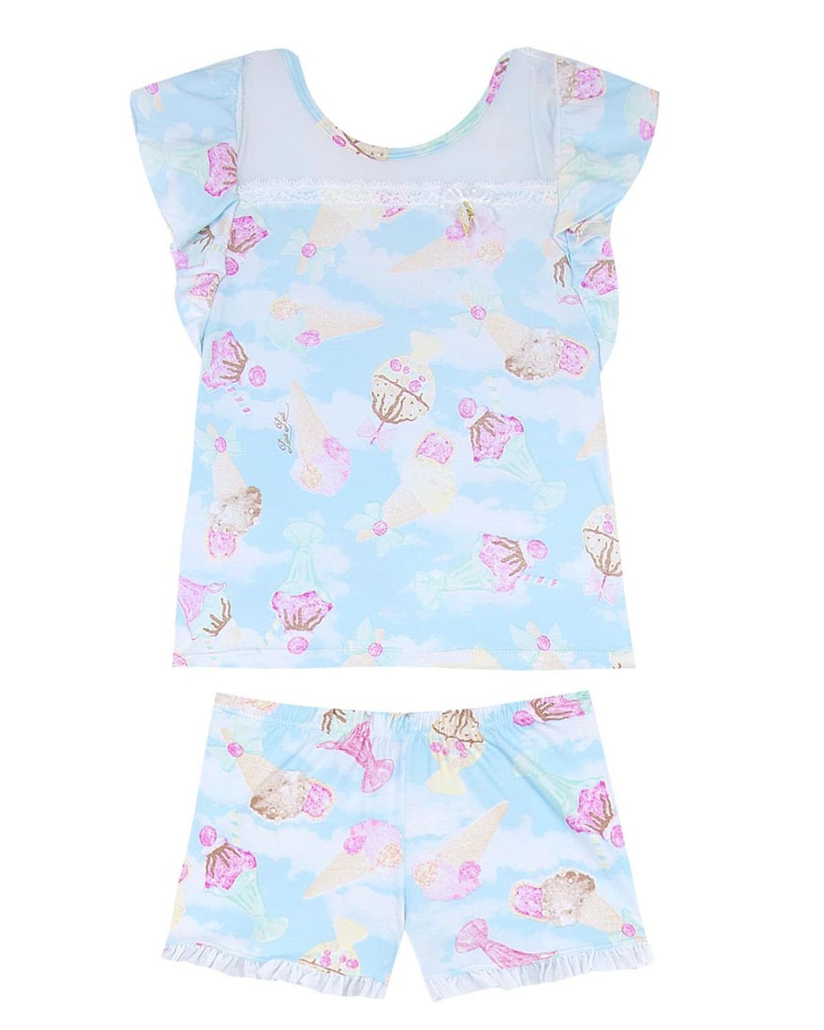 A hora de dormir é um momento único em família e precisa ser divertido, colorido e acolhedor. Para isso, este short doll tem modelagem que respeita a infância, com estampa lúdica e cheia de charme. Feito em malha extremamente macia, short com babadinhos em tule e com estampa graciosa de sorvetes por toda a peça, a diversão e o conforto estarão garantidos na hora de dormir. Destaque para tule no decote e pingente dourado em forma de sorvete aplicado no decote.