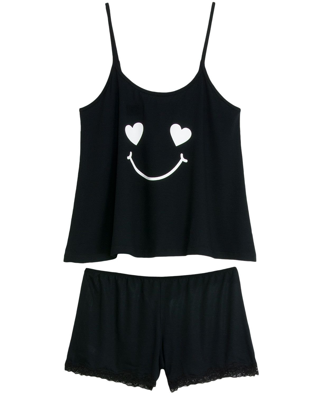 O short doll é sempre a peça favorita para garantir noites confortáveis de verão. E os que abraçam a rotina com leveza e alegria são ainda melhores. Como este modelo todo em viscolycra com silk divertido na blusa de alças finas, acompanhado de short com corte reto e acabamento em renda, conferindo o visual alegre e feminino da peça.