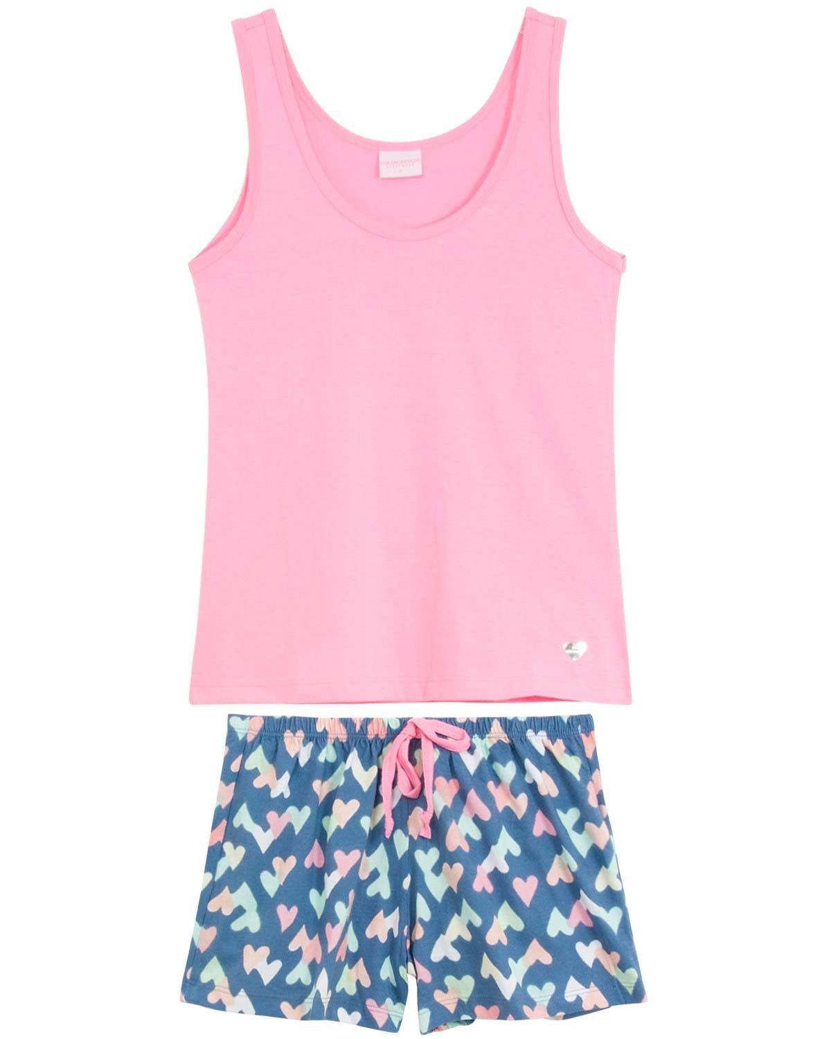 O short doll é a peça preferida no guarda-roupa de qualquer mulher, pois oferece o conforto e praticide para o dia-a-dia. Esse modelo possui todas as características para compor um visual feminino e encantador, com a camiseta regata lisa e short com estampa de corações coloridos que é a cara do verão. O melhor de tudo é a malha 100% algodão que é perfeita para ser usada nas noites quentes, pois não esquenta e não transpira. Ideal para garantir sonhos alegres e tranquilos.