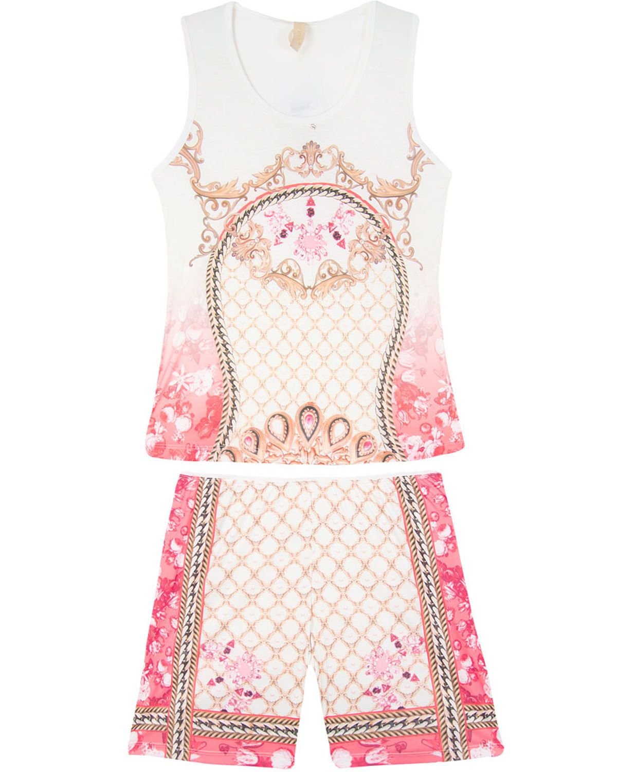 Este pijama é confeccionado em malha fria de alta qualidade, o que garante uma excelente mobilidade e um toque macio e fresco no decorrer do uso. Com estampa de lenço, seguindo as últimas tendências do mundo da moda, com fino acabamento e detalhes que enriquecem a peça. Este pijama deixará suas noites mais elegantes, coloridas e cheias de conforto.